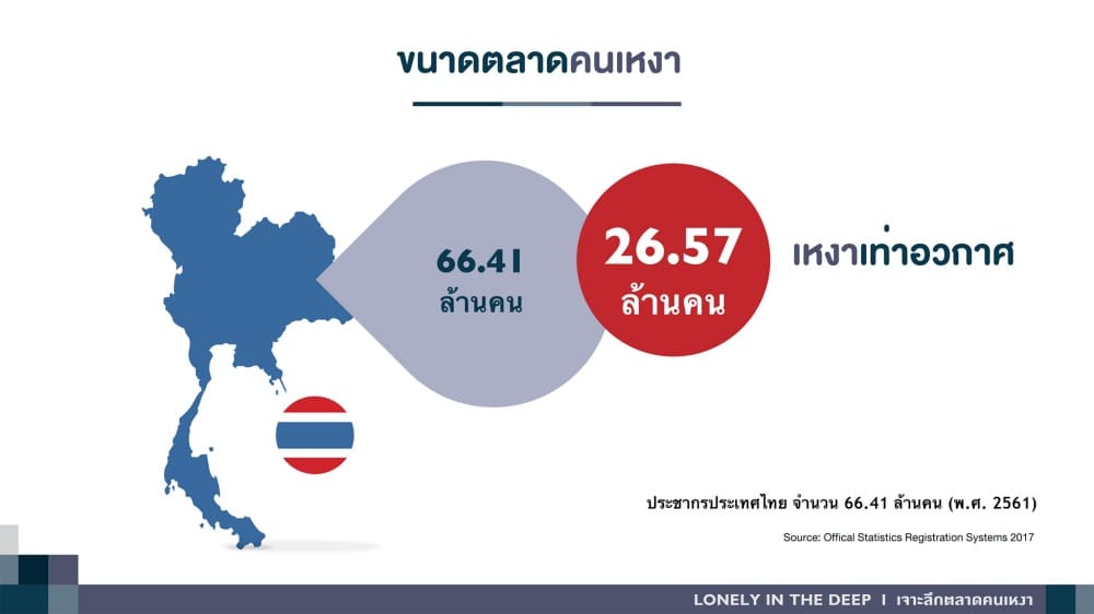 ดร.บุญยิ่ง คงอาชาภัทร หัวหน้าสาขาการตลาด วิทยาลัยการจัดการ มหาวิทยาลัยมหิดล (CMMU) กล่าวว่า การสื่อสารของปัจจุบัน ถูกเปลี่ยนผ่านจากการปฏิสัมพันธ์ระหว่างบุคคล ไปอยู่บนแพลต์ฟอร์มออนไลน์ต่างๆ แม้ว่าเทคโนโลยีจะช่วยอำนวยความสะดวกสบายในการสื่อสารมากยิ่งขึ้น แต่สิ่งหนึ่งที่หลีกเลี่ยงไม่ได้ และมาพร้อมกับการเปลี่ยนแปลงดังกล่าว ได้แก่ ความเหงา ซึ่งเป็นหนึ่งในปัจจัยด้านอารมณ์ที่ส่งผลต่อพฤติกรรมของมนุษย์ในหลายๆ ด้าน รวมถึงการรับสาร และพฤติกรรมการบริโภค โดย “การตลาดคนเหงา (Lonely Market)” ได้รับการจัดอันดับเทรนด์มาร์เก็ตติ้งในปี 2562 จากสื่อทั่วโลกชั้นนำ อย่าง ยูโรมอนิเตอร์(Euromonitor) และ มินเทล (Mintel) สะท้อนให้เห็นว่าในด้านตลาดผู้บริโภคเอง ยังมีช่องว่างอีกมากที่สามารถนำมาต่อยอดธุรกิจ “ตลาดคนเหงา”