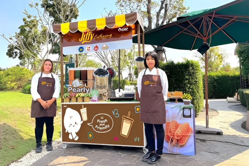 นอกจากนั้นยังได้เปิดบริการการจัดเลี้ยงนอกสถานที่ในรูปแบบแคทเทอริ่ง (Catering)  ถือเป็นการต่อยอดศักยภาพแบรนด์ จากหน้าร้านสู่โมเดล “เสิร์ฟถึงที่” รองรับทั้งงานประชุมสัมมนา  งานเลี้ยงในโอกาสพิเศษ ไปจนถึงอีเว้นต์ขนาดใหญ่  โดยชูจุดแข็งด้านคุณภาพ วัตถุดิบมาตรฐานการผลิต และความหลากหลายของเมนูที่สามารถปรับแพ็กเกจได้ตามงบประมาณ ด้วยวาไรตี้ของเครื่องดื่มและอาหารที่มีให้เลือกหลากหลาย ส่งมอบความประทับใจให้กับทุกช่วงเวลา ผู้ที่สนใจสามารถติดต่อได้ที่ โทร.093-020-0032 และ 085-489-5705 หรือที่ Fanpage Facebook Jiffy Catering