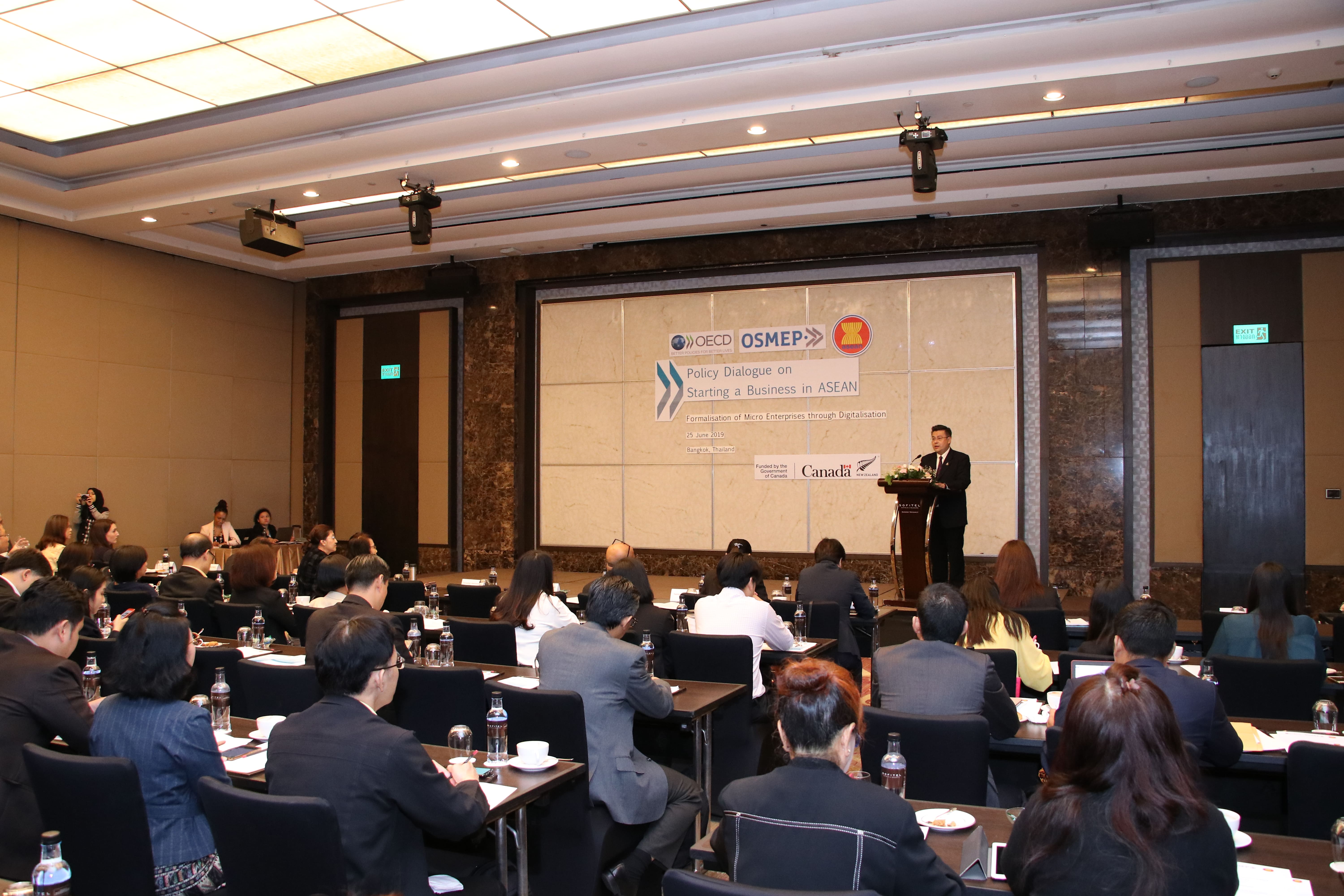 สำนักงานส่งเสริมวิสาหกิจขนาดกลางและขนาดย่อม (สสว.) เป็นเจ้าภาพจัดงานการประชุม Policy Dialogue on Formalization of Micro Enterprises ซึ่งจัดขึ้นร่วมกับองค์การเพื่อความร่วมมือทางเศรษฐกิจและการพัฒนา (Organization for Economic Co-Operation and Development – OECD) จัดประชุมเพื่อเรียนรู้แลกเปลี่ยนแนวนโยบายเพื่อส่งเสริมการเข้าสู่ระบบของผู้ประกอบการรายย่อยในอาเซียน (Policy Dialogue Formalization of Micro Enterprises) ซึ่งผู้เข้าร่วมประชุมประกอบด้วย ผู้แทนหน่วยงานส่งเสริม SMEs ใน 10 ประเทศอาเซียน สำนักเลขาธิการอาเซียน หน่วยงานในประเทศที่เกี่ยวข้อง ผู้เชี่ยววชาญจากประเทศต่างๆ ทั้ง OECD อินเดีย สิงคโปร์ และนิวซีแลนด์ซึ่งเป็นหนึ่งในประเทศที่มีระบบการสำรวจและระบบส่งเสริมผู้ประกอบการที่ดีที่สุดในโลกเข้าร่วมแลกเปลี่ยนประสบการณ์ด้านการสร้างแรงจูงใจและการกำหนดกฎระเบียบที่เกี่ยวข้อง