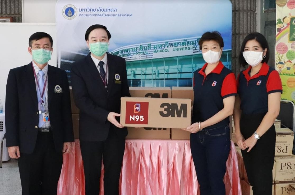 - บริจาคหน้ากากอนามัย 3M รุ่น N95 แก่บุคลากรทางการแพทย์ที่มีความจำเป็นต้องใช้งาน จำนวน 1,120 ชิ้น ผ่านทางโรงพยาบาลรามาธิบดี
