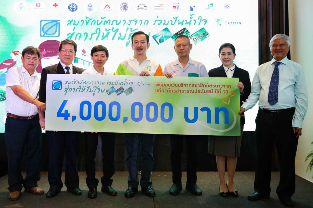 “บัตรสมาชิกบางจาก” สร้างสรรค์นวัตกรรมที่ผู้ผลิตและผู้บริโภคได้ช่วยสังคมไปด้วยกัน ร่วมมอบเงินจากคะแนนสะสมของสมาชิกบัตร รวมกับยอดสมทบของบางจากฯ เป็นเงิน 4 ล้านบาท ให้กับองค์กรสาธารณประโยชน์ด้านสังคมและสิ่งแวดล้อม รวม 13 แห่ง ต่อเนื่องเป็นปีที่ 13 ตามโครงการ “สมาชิกบัตรบางจาก ร่วมปันน้ำใจสู่การให้ไม่รู้จบ”