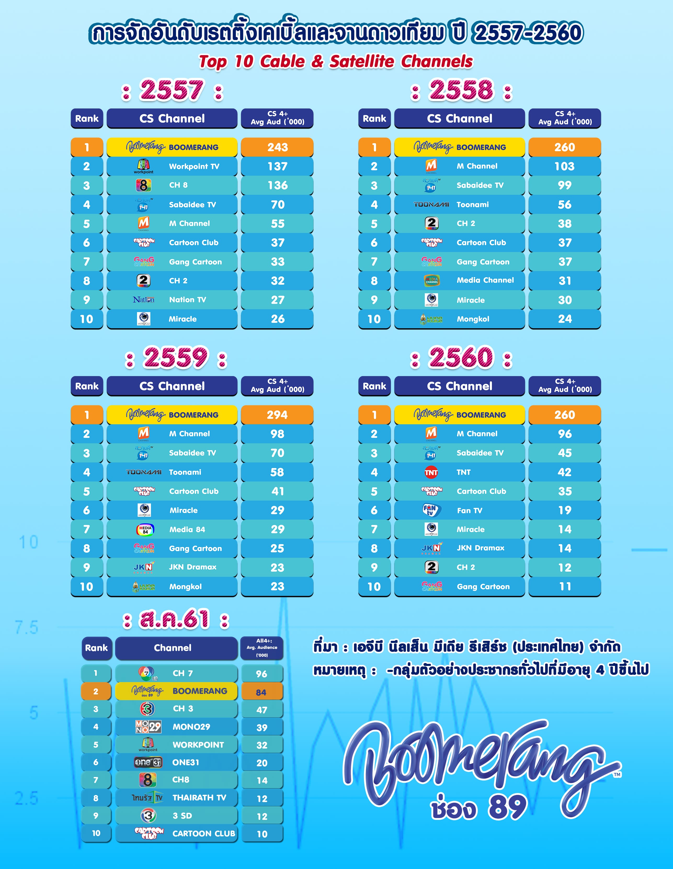 นายสยามรัศมิ์ เลาหสุขเกษม กรรมการผู้จัดการช่องบูมเมอแรง เปิดเผยว่า ในปี 2018 เป็นอีกหนึ่งปีที่ช่อง