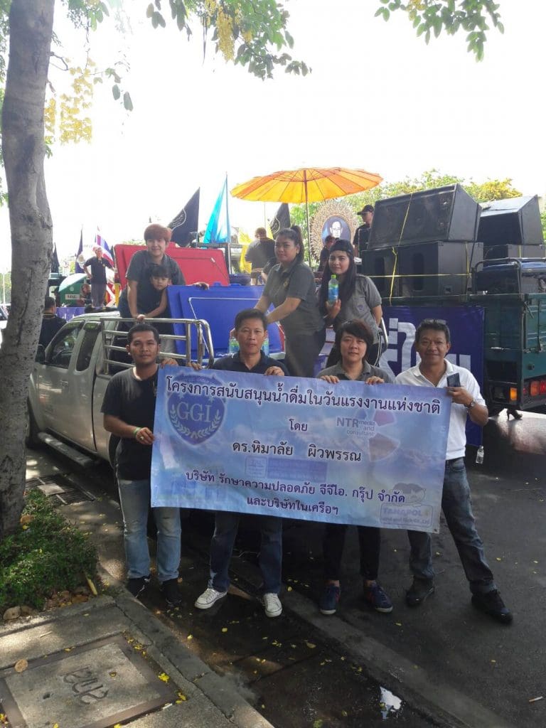 ดร.หิมาลัย ผิวพรรณ ที่ปรึกษาประธานบริหารบริษัท รักษาความปลอดภัย จีจีไอ.กรุ๊ป จำกัด และที่ปรึกษาประธานบริหารบริษัทในเครือจีจีไอ.กรุ๊ป ได้มอบหมายให้ ร.ต.อ.กษาปร์ ศิริรักษ์ ผู้ช่วยกรรมการผู้จัดการฝ่ายปฏิบัติการและพนักงานบริษัทฯ นำน้ำดื่ม หิมาลัย ไปแจกให้กับพี่น้องประชาชนทั่วไปที่มาร่วมกิจกรรมงาน ในวันแรงงานแห่งชาติ เพื่อบรรเทาคลายร้อน รวมทั้งยังเป็นการสร้างขวัญกำลังใจให้กับผู้ที่ใช้แรงงานอีกด้วย ณ บริเวณอนุสาวรีย์ประชาธิปไตย ถนนราชดำเดินกลาง กรุงเทพมหานคร