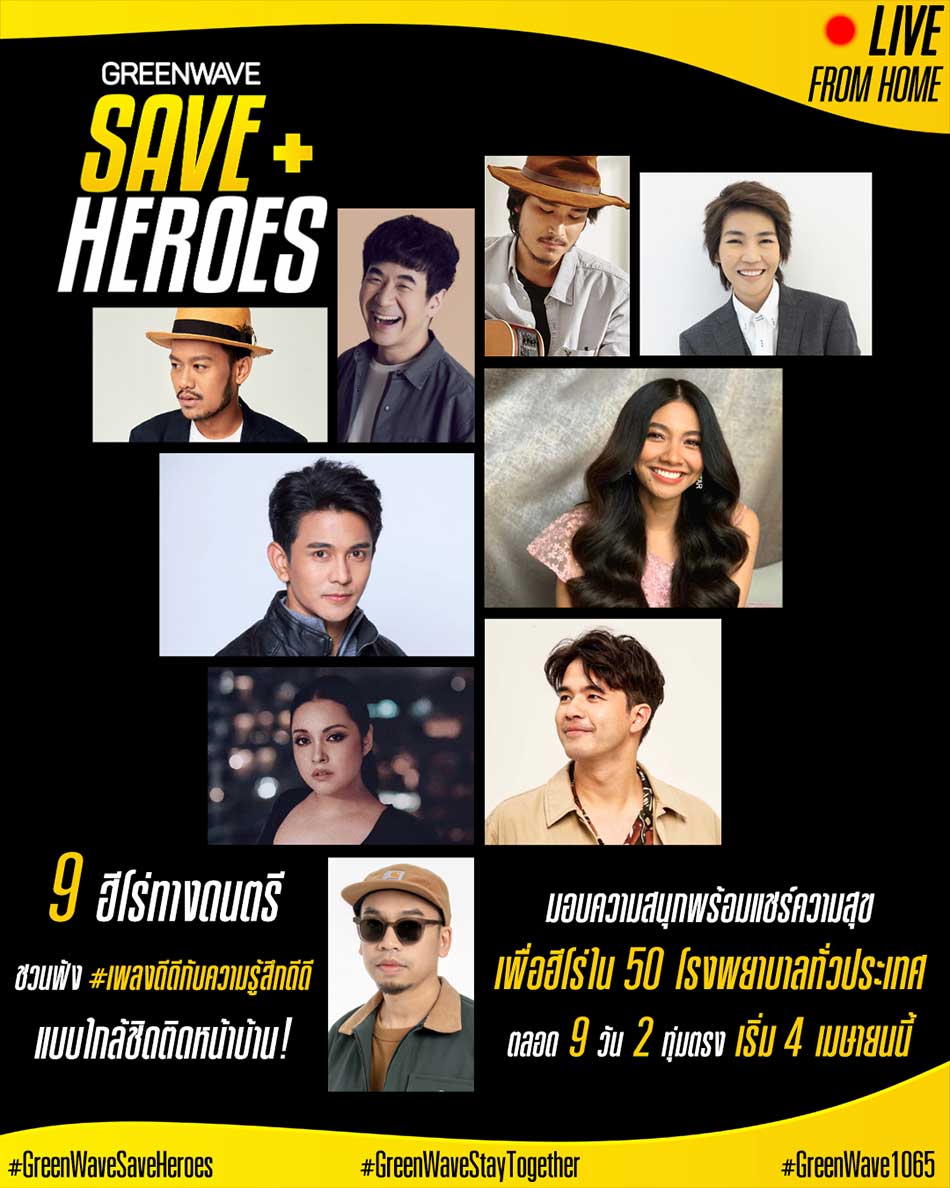 กรีนเวฟ 106.5 เอฟเอ็ม ขอชวนทุกคนร่วมบริจาคเพียงคนละ 99 บาท เพื่อซื้อชุด PPE และหน้ากากอนามัย มอบให้ทีมแพทย์ พยาบาล และบุคลากรทางการแพทย์ 50 โรงพยาบาลทั่วประเทศผ่านกิจกรรมดีๆอย่าง Greenwave Save Heroes 99 บาทก้าวผ่านโควิด-19 (กรีนเวฟ เซฟ ฮีโร่ 99 Greenwave Save Heroes 99 บาทก้าวผ่านโควิด-19)