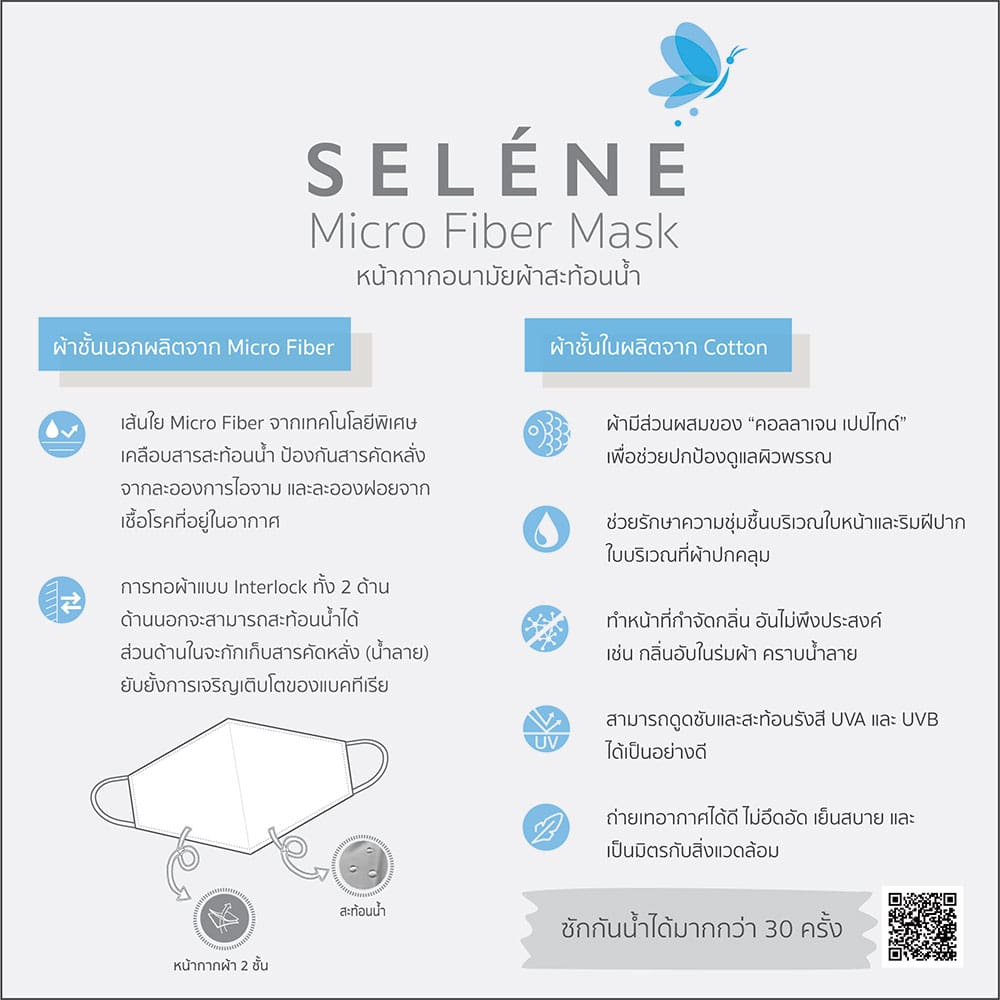 – ได้รับหน้ากากผ้า Selene Mask รุ่นพิเศษ 1 ชิ้น ที่มีคุณสมบัติสะท้อนน้ำ เทคโนโลยีผ้าคอลลาเจนเพื่อเพิ่มความชุ่มชื้น ลดกลิ่นอับและแบคทีเรีย