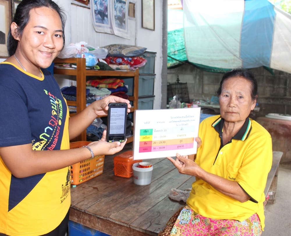 สำหรับขั้นตอนการดำเนินงานหลังสำรวจข้อมูลของกลุ่มเสี่ยงโรคหลอดเลือดสมองในพื้นที่แล้ว ศูนย์ประสานงานเด็กและเยาวชน และเจ้าหน้าที่รพ.สต. จะใช้โปรแกรม CVD Risk ในคอมพิวเตอร์ หรือ แอปพลิเคชัน Thai CV Risk Calculator ในสมาร์ทโฟน เพื่อวิเคราะห์ข้อมูลรายบุคคล โดยความเสี่ยงแบ่งเป็น 4 ระดับ เริ่มจากความเสี่ยงน้อยที่สุดเป็นแถบสีเขียว สีเหลือง สีส้ม และสีแดงตามลำดับ จากนั้น ศูนย์ประสานงานเด็กและเยาวชน ต. ทุ่งสมอ จะแจ้งภาวะเสี่ยงของแต่ละคนว่าอยู่ในระดับใด พร้อมแนะนำผู้ป่วยและผู้ดูแลในการดูแล ปรับเปลี่ยนพฤติกรรมในชีวิตประจำวัน เพื่อลดทอนภาวะเสี่ยงให้น้อยลงมากที่สุดเท่าที่จะทำได้