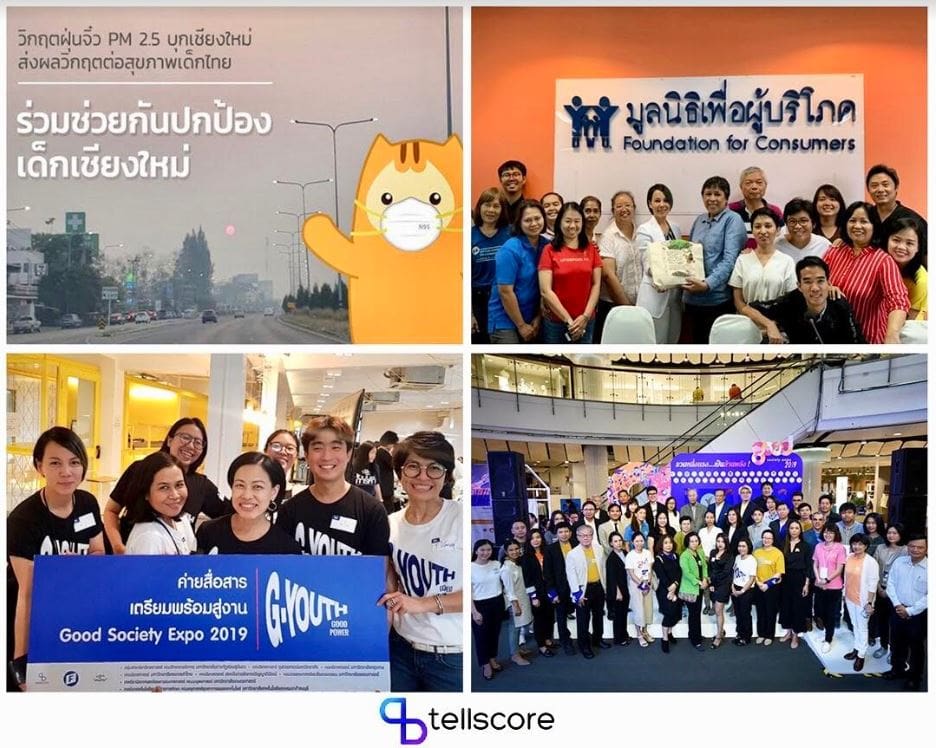 Tellscore ผู้นำด้านอินฟลูเอนเซอร์มาร์เก็ตติงแพลตฟอร์มที่ให้บริการสร้างแคมเปญอินฟลูเอนเซอร์ออนไลน์ผ่านแพลตฟอร์ม จับมือกับหน่วยงาน นำโดย มูลนิธิเพื่อคนไทย เว็บไซต์เทใจดอทคอม มูลนิธิเพื่อผู้บริโภค ร่วมกันขับเคลื่อนสร้างความตระหนักรู้ ทางสังคมและสร้างการเปลี่ยนแปลงที่ดีร่วมกัน โดยนำทัพเหล่าอินฟลูเอนเซอร์มาร่วมทำกิจกรรมสร้างสรรค์เพื่อให้เกิดประโยชน์ต่อส่วนรวม ด้วยการเป็นกระบอกเสียงผลิตคอนเทนต์และส่งต่อเรื่องราวดีๆ ระหว่างกิจกรรมและผู้ติดตาม เพราะ Tellscore เชื่อว่าการร่วมมือกันของกลุ่มคนเป็นหัวใจสำคัญที่จะช่วยเสริมสร้างสังคมให้พัฒนาต่อไป