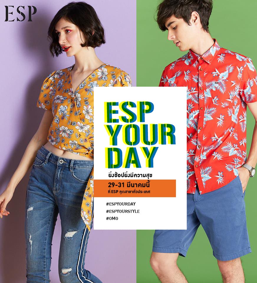 เมื่อพูดถึงเรื่องราวของสปริงซัมเมอร์ ความสดใสของเหล่าแฟชั่นนิสต้าทั้งหลายที่ต่างตั้งตารอการมิกซ์แอนด์แมทซ์เสื้อผ้าอันสนุกสนานก็กลับมาอักครั้ง ESP เอาใจสายแฟชั่น ในแคมเปญขอบคุณลูกค้าที่รักและชื่นชอบเสื้อผ้าแบรนด์ ESP ได้รวบรวมไอเทมซัมเมอร์สำหรับคุณยิ่งช้อปยิ่งมีความสุข กับ ESP YOUR DAY สินค้าคอลเลคชั่นใหม่ที่มาพร้อมโปรโมชั่นสุดจี๊ด ในวันที่ 29 – 31 มีนาคม 2562 นี้ ยังไม่พอพิเศษสุดกับกิจกรรม ช่วยสร้างลุคในแบบฉบับของตัวคุณเองให้ชิค ๆ ด้วยความเท่แอนด์เก๋เต็มพิกัด จากสไตล์ลิสต์ของแบรนด์ ESP อีกทั้งยังได้ร่วมมีทแอนด์กรี๊ด ป๊อปปี้ รัชพงศ์ อโนมกิติ เน็ตไอดอลชื่อดังจาก ดูมันดิทีวี และ มุก สิรินรัตน์ วิทยพูม นักแสดงสาวสวยจากช่อง 3 พร้อมลุ้นรับของรางวัลมากมายภายในงานตลอดทั้งวัน เฉพาะวันที่ 30 มีนาคม 2562 เท่านั้น! ที่ Shop ESP สาขาเซ็นทรัล ลาดพร้าว ตั้งแต่เวลา 13.30 น. มีอะไรดี ๆ รอคุณอยู่แน่นอน