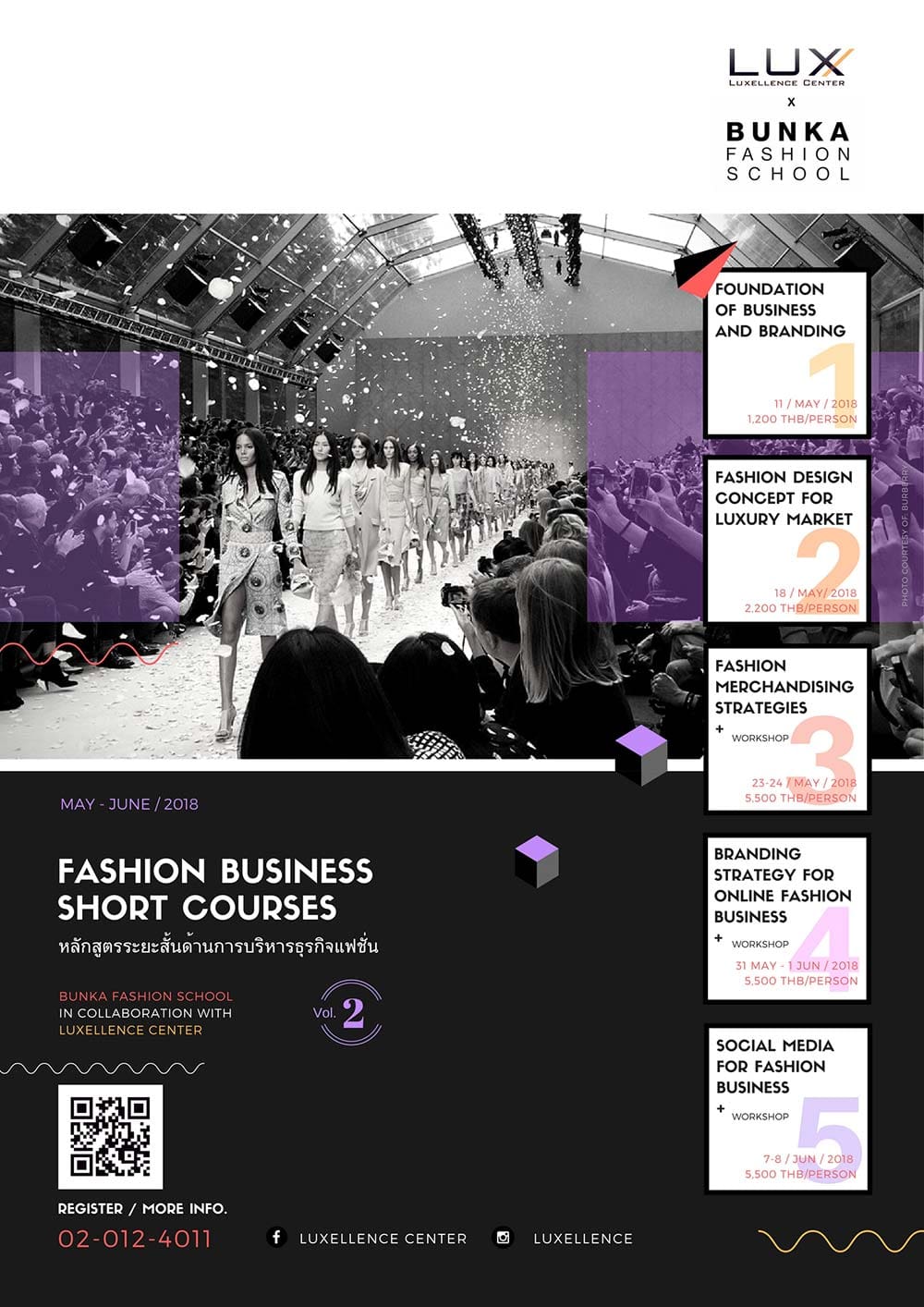 โรงเรียนบุนกะแฟชั่น ร่วมกับ สถาบัน Luxellence Center ภายใต้เครือ CP ALL เปิดหลักสูตรอบรมพิเศษ LUXELLENCE x BUNKA : Fashion Business Short Course รุ่นที่ 2สำหรับแฟชั่นดีไซน์เนอร์ เจ้าของธุรกิจแฟชั่น ผู้ประกอบการ หรือ บุคคลทั่วไปที่สนใจทำธุรกิจแฟชั่