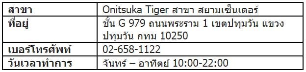Onitsuka Tiger สโตร์ที่ใหญ่ที่สุดใน SEAนี้ มีจุดเด่นด้วยขนาดพื้นที่ที่ใหญ่ถึง 237 ตารางเมตร ตั้งอยู่ ณ จุดนัดพบใจกลางเมืองอย่างห้างสรรพสินค้าสยามเซ็นเตอร์ ถือได้ว่าเป็นจุดหมายของนักช็อปทั่วทุกมุมโลก เต็มไปด้วยแบรนด์หรูหรา มีสไตล์โดดเด่น จวบจนกระทั่งแบรนด์แฟชั่นระดับสากล จึงได้ว่าที่นี่ เป็นช็อปปิ้งมอลล์ที่เป็นศูนย์กลางของแฟชั่นอย่างแท้จริง