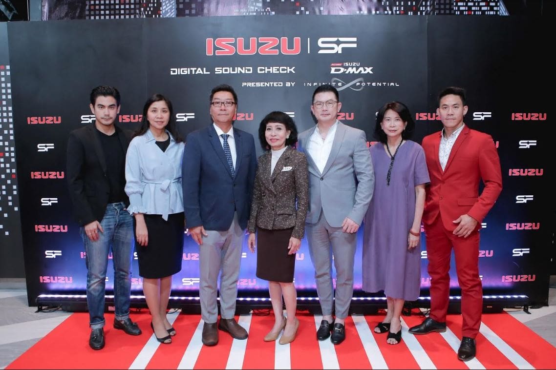 อีซูซุ ร่วมกับบริษัท เอส เอฟ คอร์ปอเรชั่น จำกัด (มหาชน) จัดงานเปิดตัวภาพยนตร์โฆษณา Digital Sound Check ชุดใหม่ “Infinite Potential” ต้อนรับการเปิดตัวรถปิกอัพรุ่นล่าสุด “ออลนิว อีซูซุดีแมคซ์” พลานุภาพ…พลิกโลก! สุดยอด “ยนตรกรรมที่เหนือกว่าคำว่าปิกอัพ” ที่มาพร้อม “ออลนิว อีซูซุดีแมคซ์ วี-ครอส 4×4” ผ่านระบบภาพและเสียงสมบูรณ์แบบของโลกภาพยนตร์ ซึ่งจะเผยแพร่ผ่านโรงภาพยนตร์ในเครือ เอส เอฟ ทุกสาขา 395 โรงทั่วประเทศ ในงานได้รับเกียรติจาก คุณปนัดดา เจณณวาสิน กรรมการรองผู้จัดการ บริษัท ตรีเพชรอีซูซุเซลส์ จำกัด คุณสุวิทย์ ทองร่มโพธิ์ ประธานเจ้าหน้าที่บริหาร สายงานการตลาด บริษัท เอส เอฟ คอร์ปอเรชั่น จำกัด (มหาชน) และนักแสดงชื่อดัง “ฌอห์ณ จินดาโชติ” มาพูดคุยบนเวทีร่วมกับพิธีกรหนุ่ม “แอนดี้ เขมพิมุก” นอกจากนี้ยังได้นำ “ออลนิว อีซูซุดีแมคซ์” พลานุภาพ…พลิกโลก! รถปิกอัพที่ร้อนแรงที่สุดในขณะนี้มาให้สัมผัสกันอย่างใกล้ชิดที่ด้านหน้า โรงภาพยนตร์ เอส เอฟ เวิลด์ ซีเนม่า ชั้น 8 ศูนย์การค้าเซ็นทรัลเวิลด์