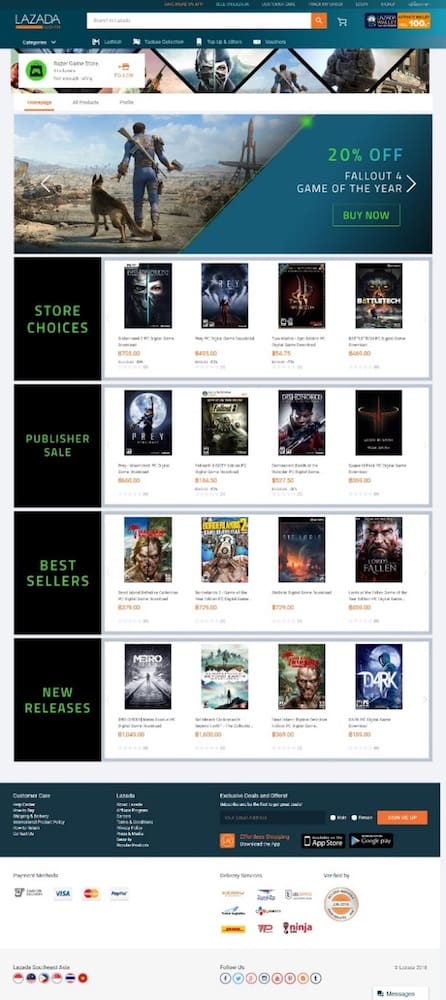ลูกค้าในไทยยังได้เพลิดเพลินกับโปรโมชันและเงินคืนที่ Lazada ประเทศไทยจัดให้เป็นพิเศษอย่างกิจกรรมส่วนลดและเงินคืนที่จัดเป็นประจำในแอป ตัวอย่างเช่น แคมเปญ “All You Ever Wanted (สวรรค์ของนักช้อป)” ที่จัดโดย Lazada ในวันที่ 9 กันยายนนี้ จะมอบส่วนลด 9.9 เปอร์เซ็นต์ให้กับลูกค้าที่ซื้อเกมด้วย Lazada Wallet เกมเหล่านี้ประกอบด้วยเกมยอดนิยมล่าสุด เช่น “Overcooked 2” เกมขายดีตลอดกาลอย่าง “Fallout 4” หรือการสั่งจองเกมสุดฮิตอย่าง “Assassin’s Creed Odyssey” และ “Metro Exodus”