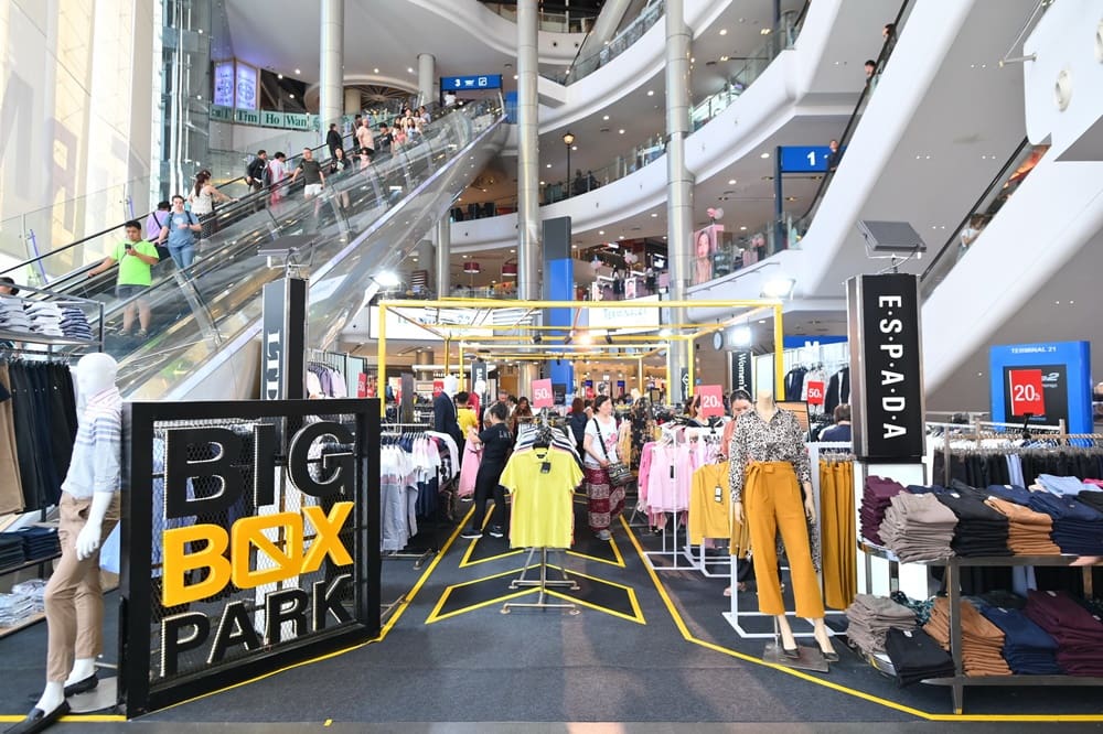 ร่วมเปิดประสบการณ์ช้อปปิ้งแบบใหม่ A Shopping Experience : Exploring Exciting New Choices of fashion & lifestyle products ที่ยกทัพแบรนด์แฟชั่นไลฟ์สไตล์ชั้นนำให้บรรดาขาช้อปได้ฟินกันอีกครั้งกับ “BIG BOX PARK 2019” OUTLET POP-UP STORE งานช้อปบรรยากาศชิคแอนด์ชิลครั้งยิ่งใหญ่ ภายในงานจะได้พบกับสินค้าแฟชั่นหลากหลายไอเทม ทั้งเสื้อผ้าสุดเก๋ไก๋ กระเป๋า รองเท้า และเครื่องประดับสำหรับสาวๆ จากแบรนด์ของไทยกว่า 16 แบรนด์ไว้ในที่เดียวกันไม่ว่าจะเป็น ESP(อีเอสพี), Espada(เอสพาด้า), F-Fashion(เอ็ฟ แฟชั่น), Von Dutch(วอนดัช), Rock Jean(ร็อคยีนส์), EP(อีพี), LTD(แอล ที ดี) ฯลฯ มาให้เลือกกันอย่างจุใจ พร้อมมอบส่วนลดพิเศษสูงสุดถึง 70 % จะเตะตาต้องใจหนุ่มสาวนักช้อปสายแฟ ขนาดไหน เราไปชี้เป้ากันเลย