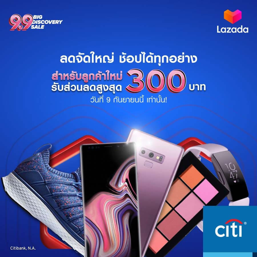 ธนาคารซิตี้แบงก์ ประเทศไทยเอาใจคอช้อปปิ้งกับโปรโมชั่นพิเศษ “Lazada 9.9” เพียงช้อปออนไลน์ผ่านแอปฯ ลาซาด้า และชำระด้วยบัตรเครดิตซิตี้ทุกประเภท พร้อมใส่รหัส CITILZNEW9 รับส่วนลด 19% เมื่อช้อปครบ 900 บาทขึ้นไป ต่อเซลส์สลิป ลดสูงสุด 300 บาท จำกัด 1,000 สิทธิ์ สำหรับทุกบัญชีผู้ใช้รายใหม่กับลาซาด้า พร้อมให้คุณสนุกกับการช้อปปิ้งอิสระได้อย่างใจ บอกเลยว่าขาช้อปตัวจริงต้องห้ามพลาด! วันจันทร์ที่ 9 กันยายน 2562 วันเดียวเท่านั้น ตรวจสอบรายละเอียดเพิ่มเติมได้ที่ facebook.com/CitiThailand