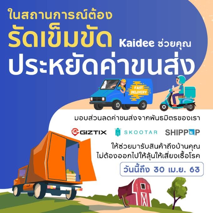 นอกจากนี้เรายังจับมือกับพันธมิตรที่ดำเนินธุรกิจขนส่งของเราทั้ง Skootar Giztix และ Shippop เพื่อมอบส่วนลดในการจัดส่ง ให้มารับสินค้าถึงหน้าบ้านคุณ ไม่ต้องออกจากบ้านไปเสี่ยงเชื้อโรคในช่วงเวลาที่ต้องรักษาระยะห่างทางสังคม หรือ “social distancing”