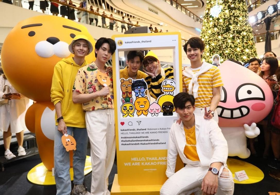 แถม โรบินสัน และ KAKAO FRIENDS’ ยังจัดบิ๊กเซอร์ไพรส์ กับการคว้าตัวทัพนักแสดงสุดฮอตจากซีรีส์ด้ายแดง UNTIL WE MEET AGAIN ซึ่งเป็นเอฟซีตัวยงของ ‘KAKAO FRIENDS’ นำทีมโดย โอห์มฐิติวัฒน์ และ ฟลุ๊คณธัช พร้อมอีก 4 นักแสดง เก้านพเก้า, เอิร์ธกัษมนณัฏฐ์, บุ๋นนพณัฐ และ เปรมวรุศ มาชวนเอฟซีและนักช้อปร่วมท่องโลก ‘KAKAO FRIENDS’ เพื่อทำความรู้จักกับ 8 การ์ตูนคาแรคเตอร์ยอดฮิต เริ่มที่สมาชิกใหม่ตัวล่าสุด RYAN (ไรอัน) สิงโตหนุ่มน้อยรัชทายาท ที่ไร้แผงคอ ผู้แสนน่ารักและอ่อนโยน MUZI & CON (มูซี และ คอน) มูซี หัวไชเท้าดองสีเหลืองในชุดกระต่าย ซึ่งมีเพื่อนสนิทผู้ซื่อสัตย์อย่าง คอน จระเข้จิ๋วปริศนาผู้มีพลังลึกลั APEACH (เอพีช) ลูกพีชแสนซนที่ถูกตัดต่อพันธุกรรม พกความกล้าบ้าบิ่นมาเต็มที่ ชอบโชว์บั้นท้ายสุดเซ็กซี่ตลอดเวลา JAY-G (เจย์จี) ตัวตุ่นสายลับฮิพฮอพสไตล์ หัวใจหล่อมาก FRODO & NEO (โฟรโด้ และ นีโอ) โฟรโด้ เจ้าตูบเมืองกรุงผู้มีฐานะ อีกทั้งเป็นหวานใจหนึ่งเดียวของนีโอ คุณเหมียวติดหรู สุดเปรี้ยว และ TUBE (ทูป) เป็ดน้อยอารมณ์อ่อนไหว แต่ถ้าอารมณ์เสียเมื่อไรจะแปลงร่างเป็นเป็ดสีเขียวสุดคลั่งขึ้นมาทันที