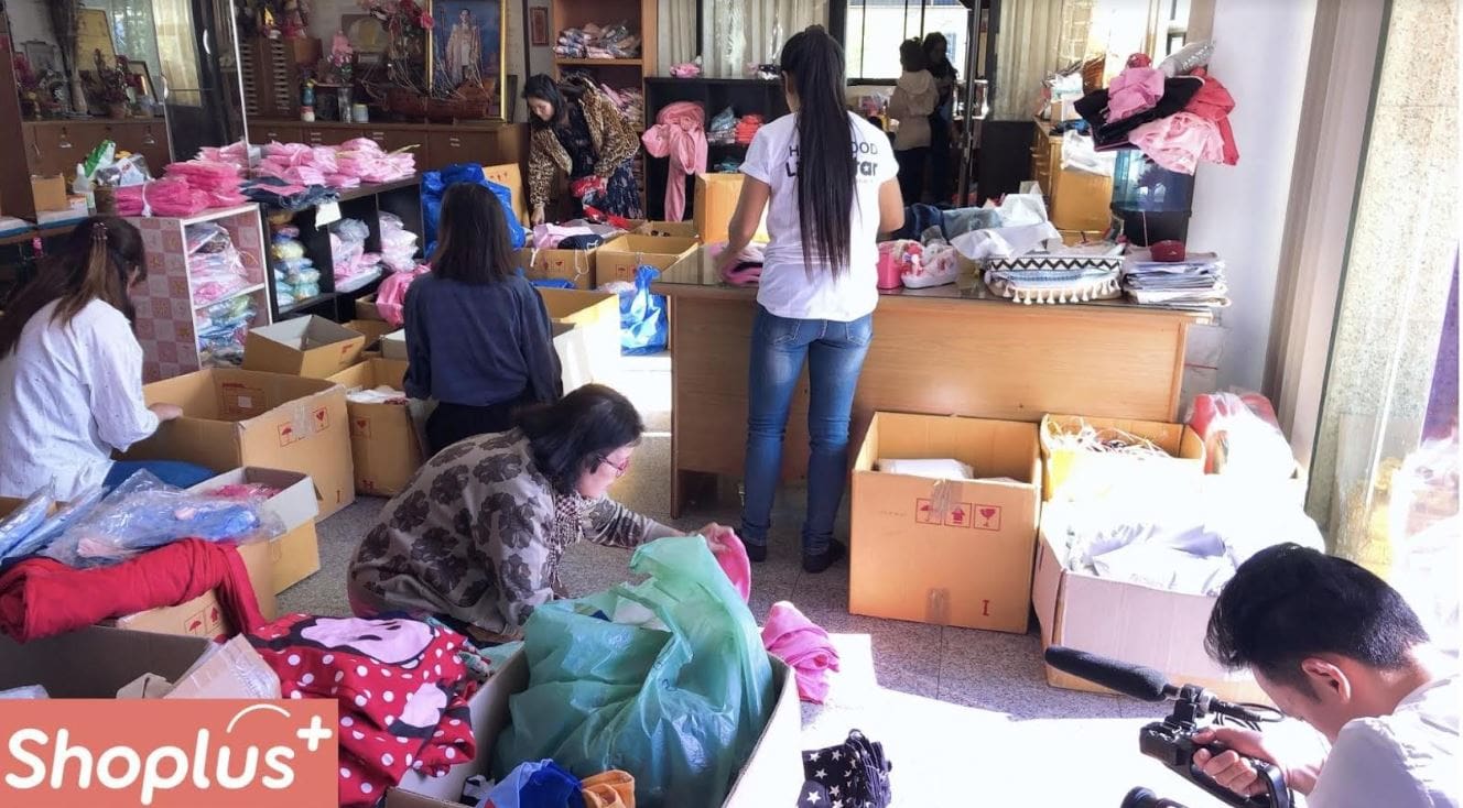 เจ้าของร้านและทีมงานของ Baby Fin Shop ขณะกำลังเตรียมจัดส่งออเดอร์สิ