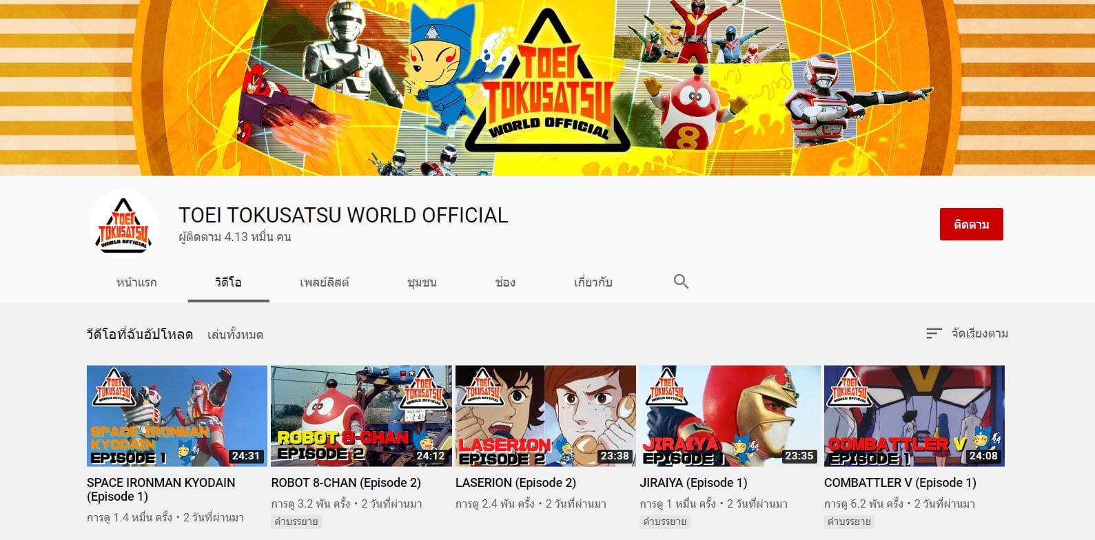 ค่ายหนังญี่ปุ่นชื่อดังอย่าง TOEI TOKUSATSU ปล่อยหนังฮีโร่ และหนังการ์ตูนยุค 80’s ลงช่อง YouTube Official ของตัวเอง และใจดีให้ดูกันแบบฟรี ๆ