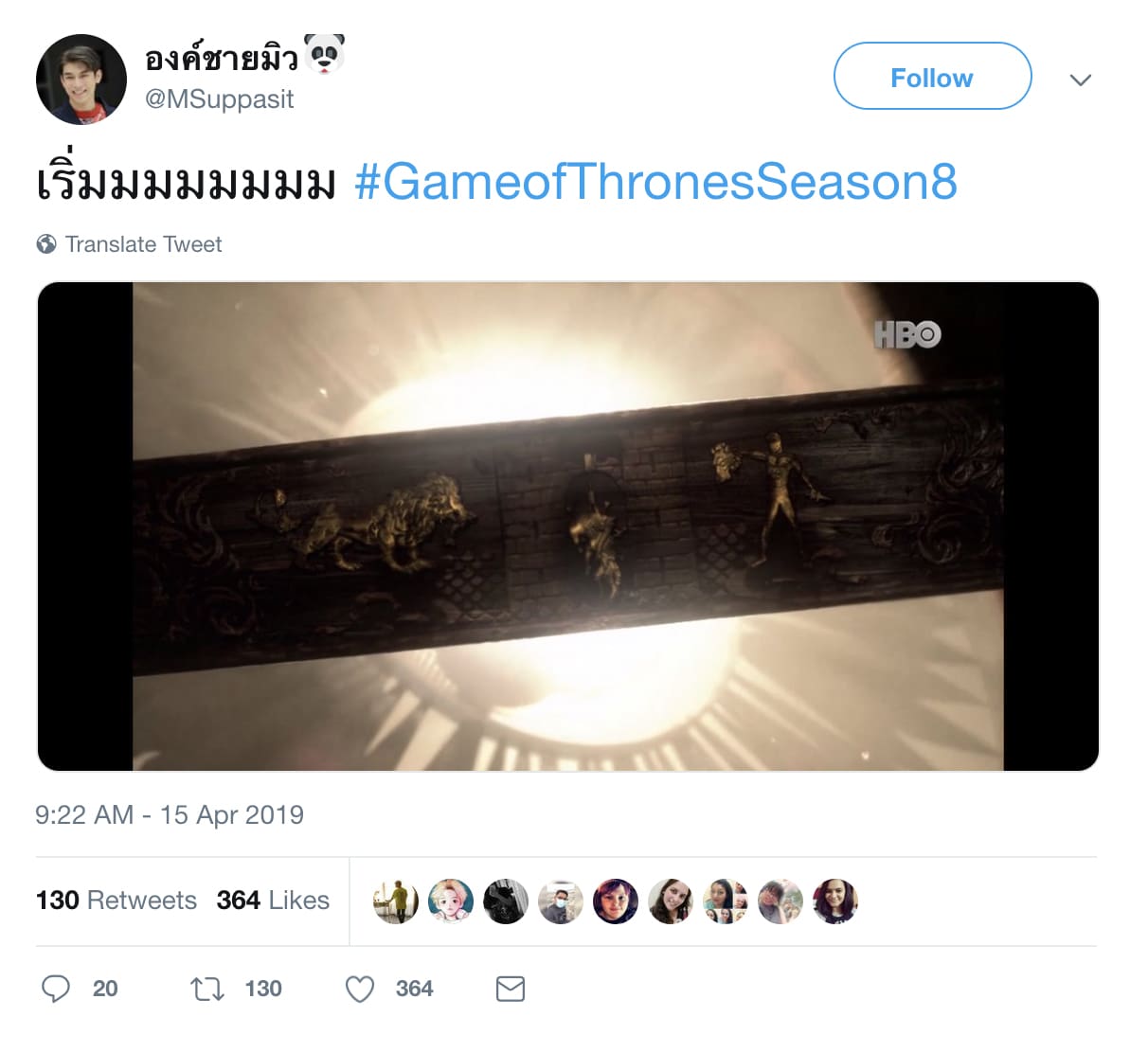 ทวีตจาก: https://twitter.com/GameOfThrones/status/1122716471564566528