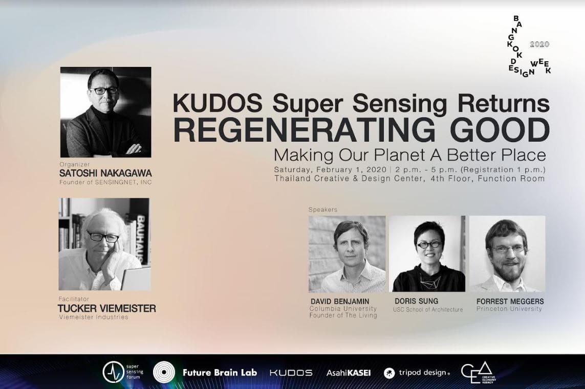 คูโดส ผู้นำธุรกิจอุปกรณ์ในห้องน้ำห้องครัว และดิจิตอลล็อคคุณภาพสูง ร่วมกับ Super Sensing Forum และ Asahi Kasei บริษัทผู้เชี่ยวชาญในการออกแบบและให้คำปรึกษาเกี่ยวกับ Sensor จากประเทศญี่ปุ่น และ CEA สำนักงานส่งเสริมเศรษฐกิจสร้างสรรค์ ชวนเข้าร่วมอัพเดตความรู้ในแวดวงการออกแบบและสถาปัตยกรรมสมัยใหม่ที่มาพร้อมกับนวัตกรรมที่ทันสมัย ในงาน “KUDOS Super Sensing Returns” พร้อมรับฟังบรรยายภายใต้หัวข้อ “REGENERATING GOOD: Making Our Planet A Better Place” ในงาน Bangkok Design Week 2020 ในวันที่ 1 กุมภาพันธ์ 2563 เวลา 14.00 – 17.00 น. (เริ่มลงทะเบียน 13.00 น.) ณ ห้อง Function Room ชั้น 4 ศูนย์สร้างสรรค์งานออกแบบแห่งประเทศไทย (TCDC)