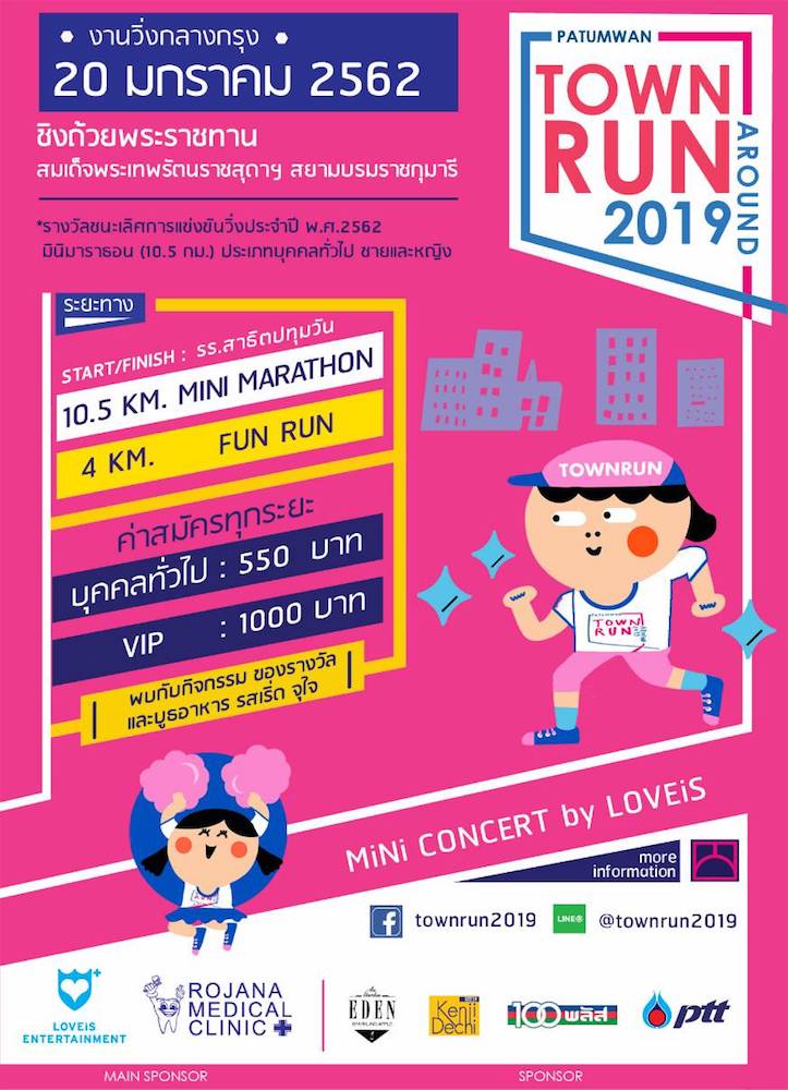 สำหรับผู้ที่สนใจสามารถสมัครได้ที่ www.race.thai.run/town-run-2019 หรือสอบถามรายละเอียดเพิ่มเติมที่ www.facebook.com/townrun2019 : Line@ : townrun2019 และ Email : [email protected]
