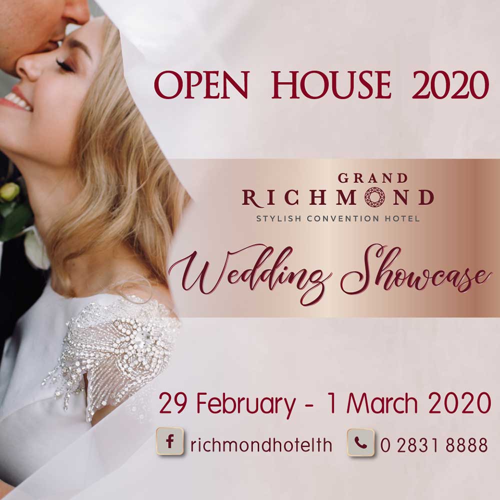 เตรียมพบสุดยอดงานเวดดิ้งแห่งปี…พร้อมโปรโมชั่นคู่รักสุดอลัง !!! ในงาน “OPEN HOUSE 2020 Grand Richmond Stylish Convention Hotel Wedding Showcase” โดย Grand Richmond Stylish Convention Hotel ร่วมกับกลุ่มพันธมิตร Wedding ชั้นนำอย่าง ห้องเสื้อ RADA Bridal & Gallery Mahassajan Event Organize and Wedding และ CHOMPRUEK Festivity Planner ทีร่วมรังสรรค์เนรมิตงานให้อบอวลรัก อบอุ่นสุขเกินบรรยาย ท่ามกลางบรรยากาศอันตระกานตา ห้องRichmond Grand Ballroom Convention Hall ที่เปิดตัวให้ทุกคู่รักร่วมเช็คอินฟินเป็นครั้งแรกในงานนี้
