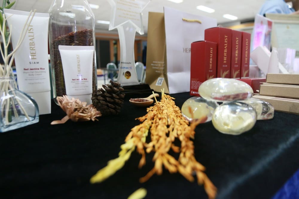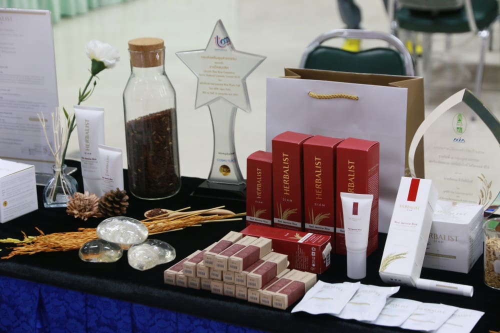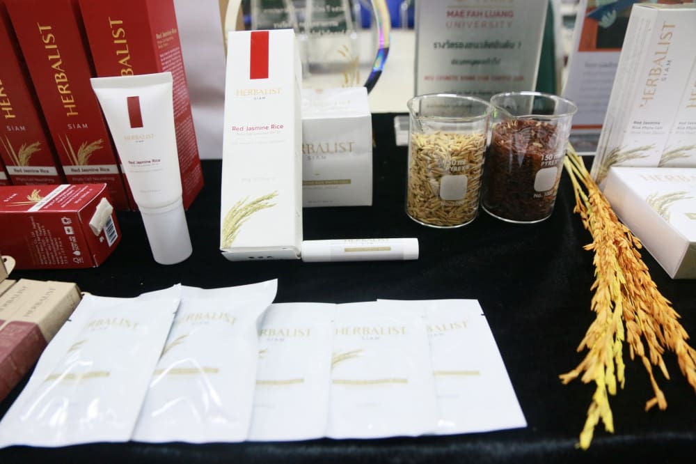 เอาใจคนรักสวยรักงามกันสักหน่อยกับวัตกรรม “HERBALIST SIAM : RED JASMINE RICE PHYTO CELL SERIES” จาก บริษัท วธูธร จำกัด ผลงานชิ้นนี้เป็นนวัตกรรมระดับประเทศด้านการนำสารสกัดจากแคลลัสข้าวหอมมะลิแดง ที่มีสารสำคัญในกลุ่มของ Phenolic Compound, Procyanidin, Amino-acid ซึ่งการใช้เทคนิคการเพาะเลี้ยงเนื้อเยื่อเพื่อให้เกิดแคลลัส จะให้ปริมาณสารสำคัญที่สูงกว่าการสกัดจากเมล็ดข้าว และมีฤทธิ์การต้านอนุมูลอิสระสูงกว่าสารสกัดจากเมล็ดข้าวถึง 3 เท่า แล้วนำมาพัฒนาเป็นผลิตภัณฑ์สบู่ ครีม และเซรั่ม ที่มีการใช้ส่วนผสมจากธรรมชาติ สำหรับการผลิตนวัตกรรมชิ้นนี้จะใช้ข้าวเปลือก 3 กิโลกรัม นำมาแกะเป็นเมล็ดข้าวสารหอมมะลิแดงได้ 1 กิโลกรัม จากนั้นจะใช้ข้าวสารหอมมะลิแดง 1 กิโลกรัม เพาะเลี้ยงแคลลัส ได้ 1 กิโลกรัม แล้วนำแคลลัส 1 กิโลกรัม นำมาสกัด เพื่อให้ได้สารสกัดจากสเต็มเซลล์ 1 ลิตร ทั้งนี้ หากประเมินราคาของสารสกัดจะอยู่ที่ 18,000 บาท ต่อ 1 ลิตร และถ้าหากประเมินยอดการใช้สารสกัด 25 กิโลกรัมต่อการผลิตสินค้า 5,000 ชุด (Serum, Cream, Soap) ก็พบอีกว่าช่วยเพิ่มมูลค่าสารสกัดคิดเป็น 900 เท่าของข้าวเปลือกหอมมะลิแดงเลยทีเดียว