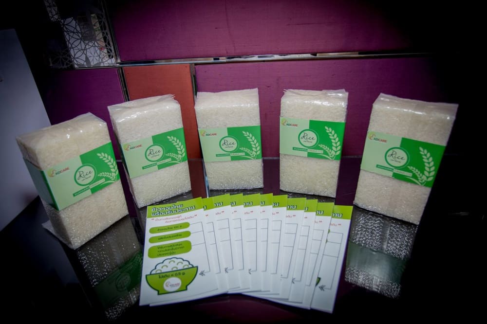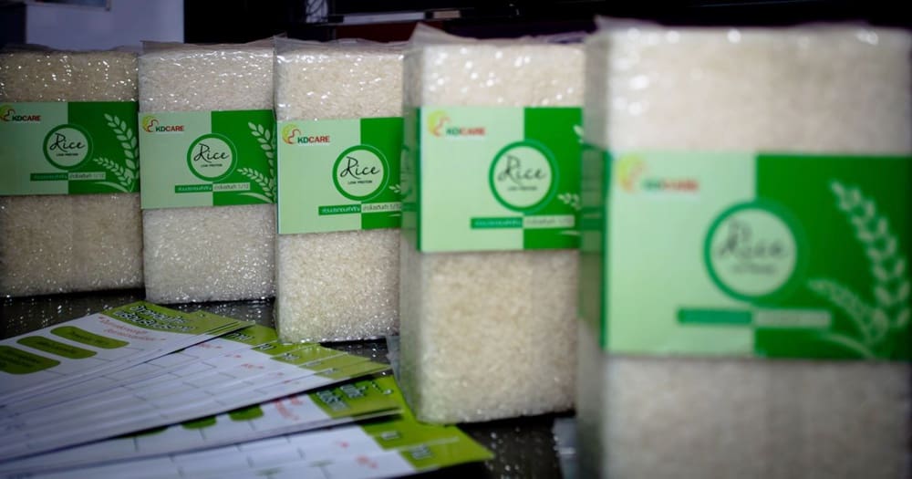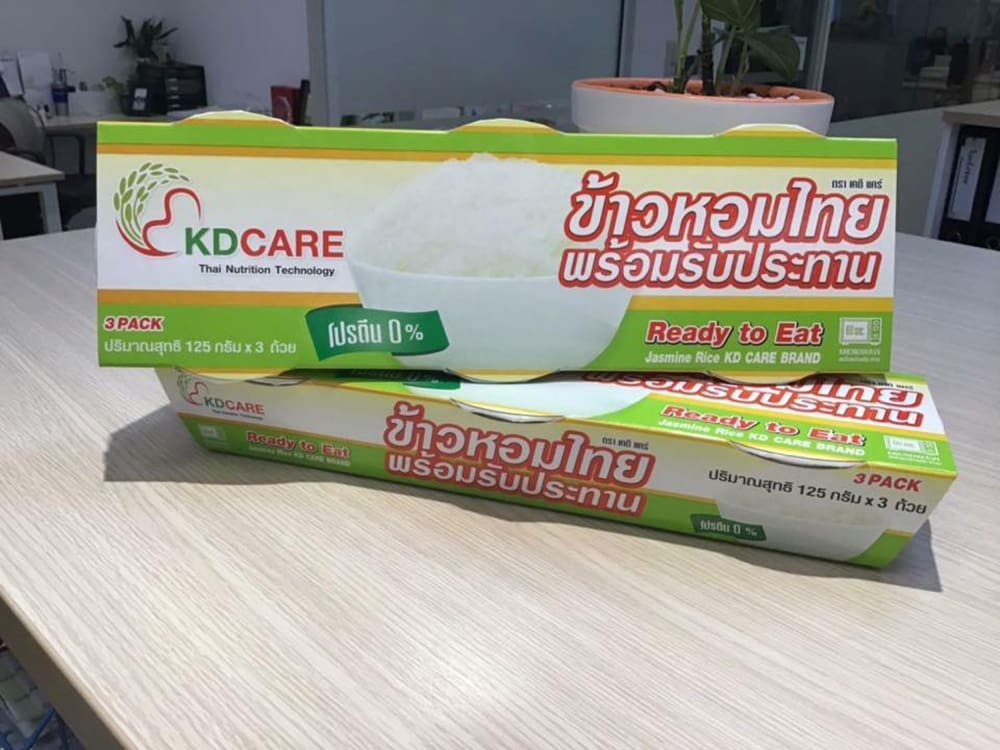 เริ่มกันที่ รางวัลชนะเลิศจากปี 2561 ซึ่งเป็นปีล่าสุดกับผลงาน “KD Care : ข้าวหอมโปรตีนต่ำพร้อมรับประทาน” ได้ยินแล้วอาจจะคิดว่าเป็นข้าวเพื่อใช้ในการไดเอท หรือควบคุมแคลอรี่สำหรับผู้ที่กำลังลดน้ำหนัก แต่จริงๆแล้วนวัตกรรมข้าวชิ้นนี้ถูกคิดค้นมาเพื่อผู้ที่กำลังมีปัญหาด้านสุขภาพในกลุ่มผู้ป่วยโรคไตเรื้อรัง โดยกลุ่มผู้คิดค้นจากบริษัท ไทย นิวทริชั่น เทคโนโลยี จำกัด ได้นำข้าวหอมปทุมธานีซึ่งมีโปรตีนอยู่ระหว่างร้อยละ 5 – 8 มาผ่านกระบวนการย่อยโปรตีนด้วยเอนไซม์ แล้วนำไปทำแห้งซึ่งข้าวที่ผ่านกระบวนการดังกล่าวมีปริมาณโปรตีนน้อยกว่า 1.19 กรัมต่อ 100 กรัม แล้วนำข้าวที่ได้มาบรรจุใน retort cup แล้วผ่านกระบวนการสเตอริไลส์เป็นข้าวพร้อมรับประทาน ซึ่งผลิตภัณฑ์ดังกล่าวจะเป็นประโยชน์ต่อผู้ป่วยโรคไตคือ ถ้าปริมาณโปรตีนในข้าวที่รับประทานลดลง จะทำให้ผู้ป่วยสามารถรับประทานโปรตีนจากเนื้อสัตว์ได้เพิ่มขึ้น เพราะผู้ป่วยต้องการกรดอะมิโนจำเป็นจากเนื้อสัตว์ที่มีคุณภาพดีไม่ใช่จากพืช