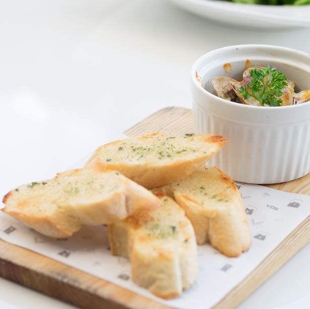 หอยลายอบกระเทียม เมนูนี้ได้กลิ่นหอมของเนยและกระเทียมแบบเต็ม ๆ โดยที่ไม่รู้สึกเลี่ยนเลยซักนิด ยิ่งกินคู่กับขนมปังกระเทียม ยิ่งอร่อยเลยทีเดียว