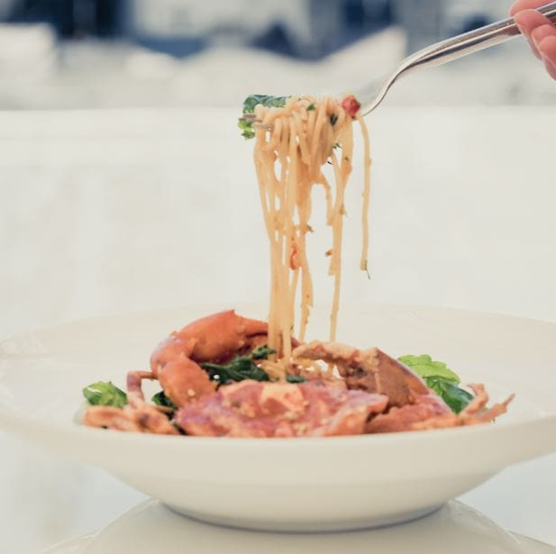 สปาเกตตี้ผัดกระเพราปูนิ่มทอด เห็นแบบนี้อย่าคิดว่ารสชาติจะเบา ๆ สไตล์อาหารยุโรปนะ ขอบอกเลยว่ารสแซ่บจัดจ้านมาก ๆ