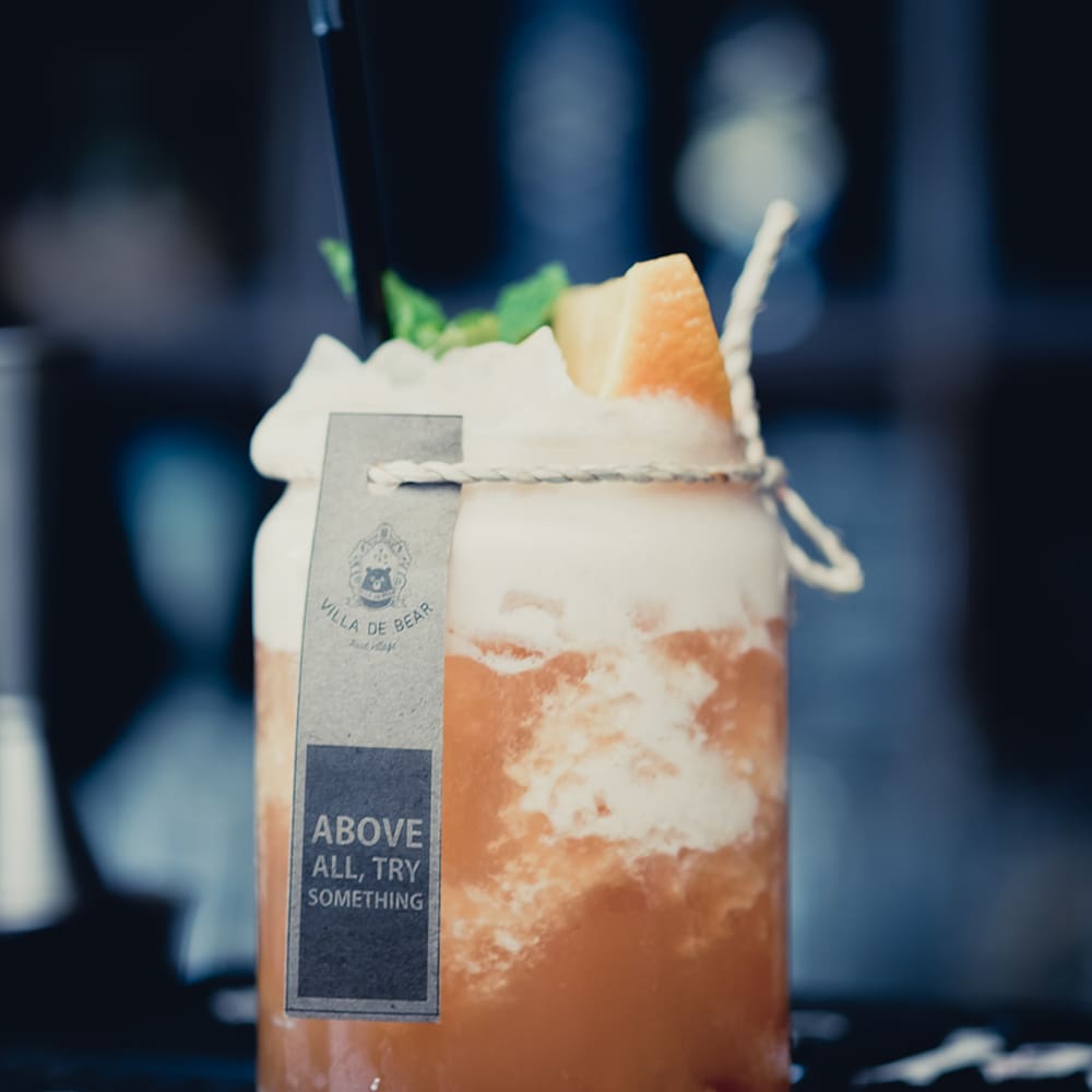 เริ่มจาก Tea Foam หวานเบา ๆ อมเปรี้ยวนิด ๆ ด้วยส่วนผสมของ Jasmine Tea และน้ำผลไม้ Mix Berry