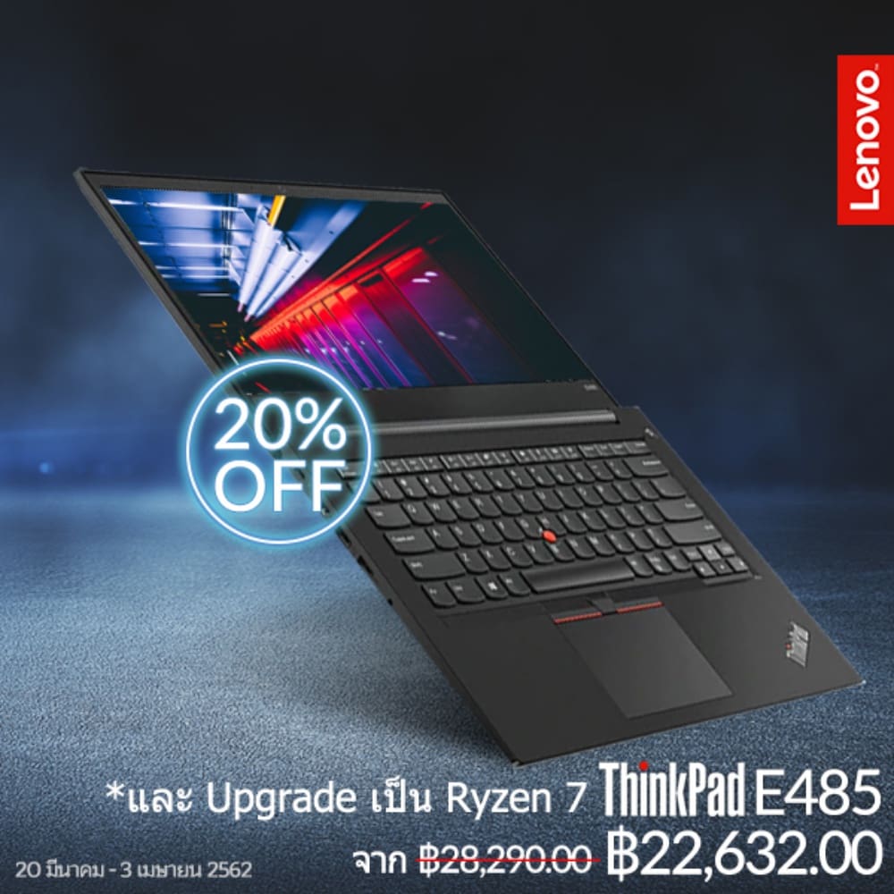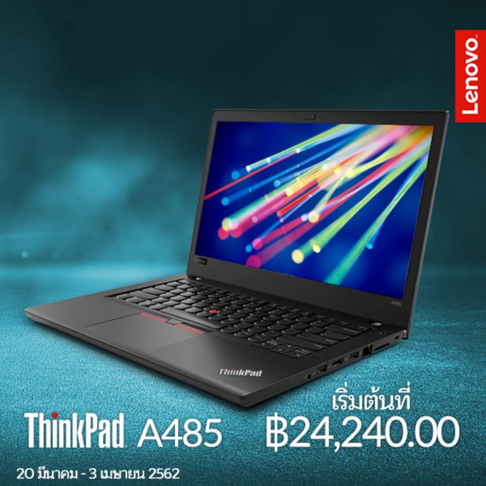 - รับส่วนลดทันที 20% สำหรับผลิตภัณฑ์ ThinkPad A485 ในราคาพิเศษเพียง 24,240 บาท จากราคาปกติ 30,300 บาท
