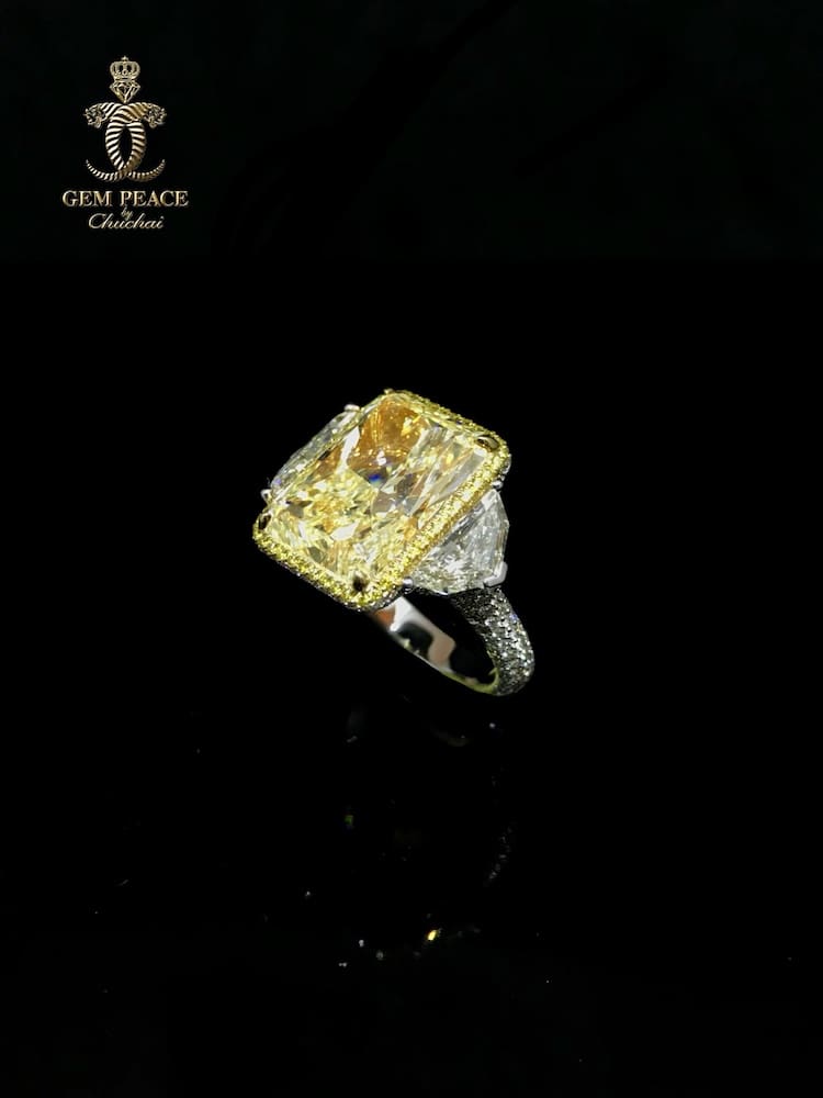 คอลเลคชั่นที่ 2 แหวนเพชร Fancy Vivid Yellow diamond ขนาด 9 กะรัต ประดับด้วยเพชรทรงแฟนซีด้านข้างเพื่อเสริมให้เพชรเม็ดกลางมีความโดดเด่นมากยิ่งขึ้น