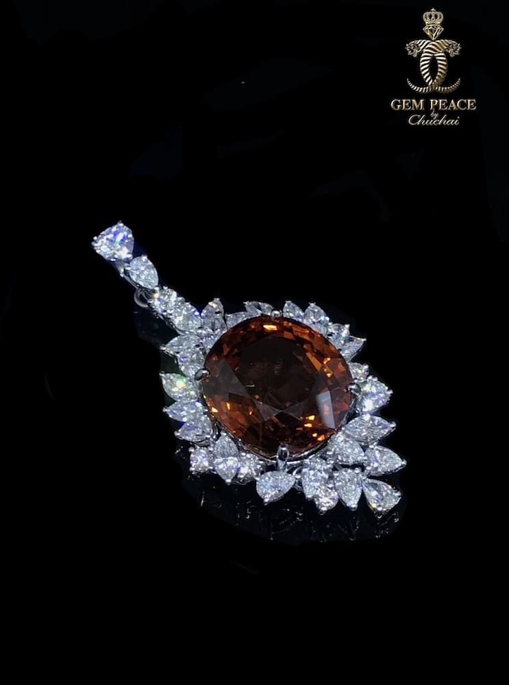 คอลเลคชั่นที่ 5 จี้บุษราคัม ประดับเพชรบนตัวเรือนทองคำขาว โดยคัดพลอยบุษราคัม yellow sapphire ไซส์พี่เศษ สีสวยที่สุด และไร้ตำหนิ ขนาดกว่า 40 กะรัต ประดับด้วยเพชรน้ำ 100 D color เพื่อให้เป็นชิ้นงานที่เลอค่าทั้งการออกแบบ และอัญมณีที่นำมาใช้