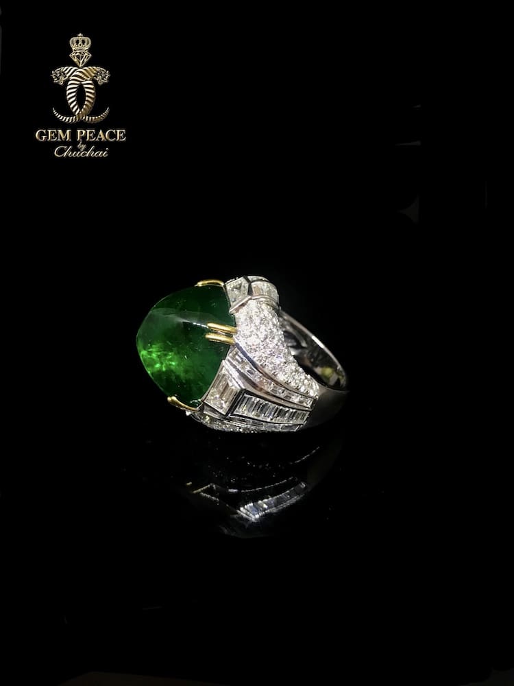 คอลเลคชั่นที่ 6 แหวนมรกต ทรง sugar loft ขนาดใหญ่พิเศษกว่า 36 กะรัต คัดสีที่ดีที่สุดและมีความใสสะอาดที่มากๆ ซึ่งเป็นหนึ่งในอัญมณีที่หายาก จัดวางลงบนตัวเรือนที่ดีไซเนอร์ออกแบบให้สื่อถึงความสง่างาม ตามรูปทรงของตัวพลอย อีกทั้งบางท่านเรียกการเจียรไนทรงนี้ว่าเป็นทรง “ กองข้าว “ คือทรงที่กินไม่หมด ใช้ไม่หมด