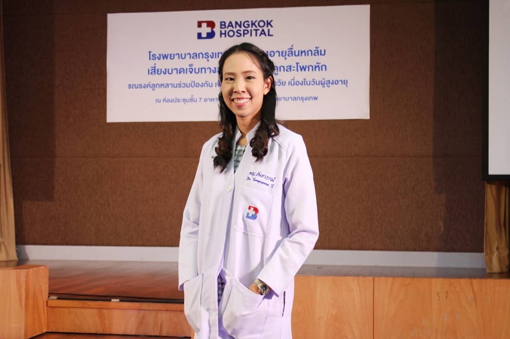 พญ. ธันยาภรณ์ ตันสกุล แพทย์เวชศาสตร์ฟื้นฟู โรงพยาบาลกรุงเทพ กล่าวว่า การดูแลผู้ป่วยระยะพักฟื้นการกายภาพและฟื้นฟูร่างกายโดยทีมสหสาขา จะเป็นอีกทางเลือก ที่ช่วยให้ผู้ป่วยสามารถฟื้นฟูร่างกายให้กลับมาแข็งแรงได้เร็ว สามารถกลับไปใช้ชีวิตได้ โดยไม่เป็นภาระของครอบครัว ลดภาวะแทรกซ้อนและลดอัตราการเข้ารักษาซ้ำ(re-admission) ที่โรงพยาบาล โดยกลุ่มผู้ป่วยที่มีปัญหาด้านระบบประสาทและสมอง ผู้ป่วยระบบกระดูกและกล้ามเนื้อ ผู้สูงอายุที่มีปัญหาทางด้านการทรงตัวและการเคลื่อนไหว เพื่อให้ผู้ป่วยเกิดการตระหนักรู้ในการป้องกันการหกล้ม และมีความสามารถในการทรงตัวและการเคลื่อนไหวที่มีประสิทธิภาพ แพทย์จะทำการตรวจประเมินความเสี่ยงในการหกล้ม ให้การรักษาด้วยโปรแกรมฝึกความสามารถในการทรงตัวและการเคลื่อนไหว โดยแนวทางป้องกันการหกล้มในผู้สูงอายุ อาทิการฝึกเดินที่ถูกต้อง รวมถึงการสวมรองเท้าที่เหมาะสม การออกกำลังกายเพื่อเสริมสร้างกำลังของกล้ามเนื้อ ฝึกการทรงตัว ทดสอบด้วยเครื่อง Balance Master เพื่อตรวจความสามารถในการทำกิจกรรมประจำวัน ทดสอบการเซ ความสมดุล จุดศูนย์ถ่วงของร่างกาย เครื่อง Aquatic Treadmill เป็นเครื่องออกกำลังกายแบบสายพานวิ่งในน้ำ เพื่อช่วยผู้สูงอายุที่มีปัญหาการทรงตัว ผู้ป่วยทั้งก่อนและหลังผ่าตัดข้อกระดูกสันหลัง สะโพกเสื่อม กระดูกหัก ช่วยลดอาการบาดเจ็บบริเวณข้อต่อและกล้ามเนื้อ ซึ่งเป็นโปรแกรมเฉพาะบุคคลที่สามารถปรับระดับน้ำได้ หรือใช้เครื่อง Alter-G Treadmill ลู่วิ่งต้านแรงโน้มถ่วง อุปกรณ์คล้ายถุงลมช่วยแบกรับน้ำหนักของร่างกายเอาไว้ได้สูงสุดถึง 80% ของน้ำหนักตัว สำหรับผู้ป่วยมีปัญหาในการลงน้ำหนัก เช่น หลังผ่าตัดใหม่ๆ บริเวณขา หัวเข้า ข้อเท้าหรือเท้า ผู้ที่มีน้ำหนักตัวมาก นักกีฬาหรือผู้ป่วยที่ต้องการให้ร่างกายแข็งแรงจำเป็นต้องมีการออกกำลัง เพื่อให้เกิดการเคลื่อนไหวของข้อต่อและกล้ามเนื้อ การใช้อุปกรณ์ช่วยเดิน เช่น โครงเหล็ก 4 ขา (Walker) ไม้เท้า การปรับพฤติกรรมส่วนตัว เช่น การค่อยๆ ลุกยืนอย่างช้าๆ เพื่อป้องกันไม่ให้ความดันโลหิตตกในท่ายืน หรือหน้ามืด การหาราวสำหรับเกาะเดิน นอกจากนี้ผู้ป่วยควรสร้างเสริมภาวะโภชนาการที่ดี การรับประทานอาหารให้ครบ 5 หมู่ หรือเมื่อต้องใช้ยาควรที่จะปรึกษาแพทย์หรือเภสัชกร ประเมินการใช้ยา หลีกเลี่ยงการใช้ยาที่ไม่จำเป็น หรือมากเกินไป หากได้รับยาหลายชนิดที่อาจส่งผลให้เกิดการหกล้มแนะนำให้ปรึกษาแพทย์