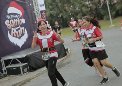 งานนี้กรีนเวฟเนรมิตต้นคริสมาสต์ขนาดใหญ่ กล่องของขวัญ และหิมะ มาสร้างบรรยากาศให้สวนหลวง ร.9 คึกคักสุดๆ โดยเหล่าดารา นักร้อง ดีเจ มาเช็คชื่อกันตั้งแต่เช้ามืดเริ่มตั้งแต่ ดีเจอ้อย นภาพร / ดีเจเฟี้ยต ธัชนนท์ / ดีเจปอ นันทชัย / ดีเจป๊อบ กิตติพงศ์ / ดีเจโกเมน และดีเจเกศริน จากกรีนเวฟ 106.5 เอฟเอ็ม พร้อมด้วย หญิง รฐา โพธิ์งาม – ตุล ตุลยเทพ / แนท อนิพรณ์ / นิต้า อนิพรรณ / พลอยชมพู / โอ อนุชิต / ปิงปอง ศิรศักดิ์ / จั๊ก ชวิน / ปราโมท วิเลปานะ / ที – หมู JETSETER / บี๋ คณาคำ / เอก-เปา-จั๊ก-เจ SEASON FIVE / ศิลปิน MBO จาก GRAMMY ได้แก่ นุ่น ธัญญพัทธิ์ – ริซ่า เมริซ่า – ตอง ศุภณัฐ – จิด้า จิดาภา / โป้ง โมเดิร์นด๊อกซ์ / ป๊อก – ชุ วง ZEAL / บอส วงพอส / เบล -ปั๊ก-เอ็ม-ก้อง-เต๊ะ วง Middle Lane / เอ๋ วง Ebola / อริน – บาส วงDose / เจ -แช้มป์ -แอ็นด์ วงเปรม / แอ๊น-วิน Emotion town และบรรณ สุวรรณโณชิน แถมยังช่วยเป็นแกนนำพาทุกคนออกกำลังยืดเส้นยืดสายคลายกล้ามเนื้อ ก่อนปล่อยตัวนักวิ่งทั้งประเภท 10 กิโลเมตร และ 5 กิโลเมตร ซึ่งตลอดเส้นทางนักวิ่งทั้งหลายต่างยิ้มแย้มให้กันกับคอสตูมของแต่ละคนที่สร้างสรรค์แปลงร่างเป็นซานต้า-แซนตี้ได้เข้าธีมงานได้สวยหล่อกันทุกคน แถมบางคนยังจัดเต็มชนิดแฟนซีสุดๆ ทั้ง ซานตาคลอส กวางเรนเดียร์ ไดโนเสาร์ หรือบางกลุ่มนัดกันแต่งมาเป็นทีมสร้างสีสันให้การวิ่งครั้งนี้เป็นที่สุด