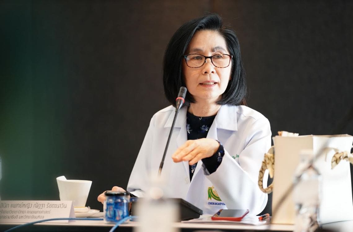 ศาสตราจารย์คลินิก แพทย์หญิง ณัฎฐา รัชตะนาวิน (กลาง) อาจารย์ประจำสาขาวิชาตจวิทยา คณะแพทยศาสตร์ โรงพยาบาลรามาธิบดี มหาวิทยาลัยมหิดล พร้อมด้วย แพทย์หญิงพู่กลิ่น ตรีสุโกศล (ขวา) รองผู้อำนวยการด้านการแพทย์ และ แพทย์หญิงอรยา กว้างสุขสถิตย์ (ซ้าย) รองผู้อำนวยการด้านพัฒนาระบบสุขภาพ สถาบันโรคผิวหนัง กรมการแพทย์ กระทรวงสาธารณสุข ร่วมให้ความรู้ความเข้าใจที่ถูกต้องเกี่ยวกับโรคสะเก็ดเงิน (Psoriasis) ซึ่งเป็นโรคทางภูมิคุ้มกันและไม่ติดต่อ ที่สามารถรักษาให้ดีขึ้นได้ เพื่อคุณภาพชีวิตที่ดีขึ้นของผู้ป่วย