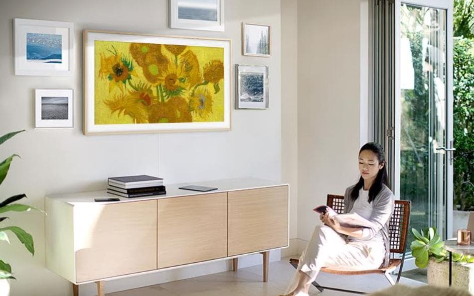 เมื่อไม่ได้ใช้งาน The Frame จะเปลี่ยนเข้าสู่ Art Mode ที่สามารถดึงเอาภาพงานศิลปะชื่อดังทั่วโลกมาแสดงบนหน้าจอได้ แปลงโฉมให้บ้านของคุณให้กลายเป็นแกลเลอรีส่วนตัว และคุณยังสามารถโชว์รูปของคุณเองได้เช่นกัน โดย The Frame มีฟิลเตอร์ให้เลือกใช้ถึง 6 แบบ เพื่อสร้างความโดดเด่นลงตัวให้กับรูปของคุณขณะแสดงอยู่บนหน้าจอ นอกจากนี้ The Frame ให้คุณเลือกสีพื้นหลังของภาพได้ถึง 10 สี เพื่อทำให้ผลงานศิลปะหรือภาพของคุณออกมาดูดีที่สุด