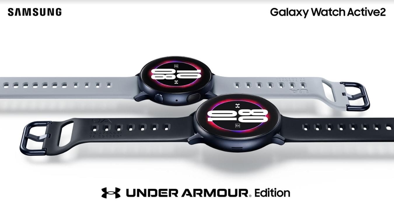 Galaxy Watch Active2 Under Armour Edition วางจำหน่ายแล้วในขนาด 44 มม. มาพร้อมสายสปอร์ตสีดำ ราคา 10,900 บาท และตัวเรือนขนาด 40 มม. มาพร้อมสายสีเทา ในราคา 9,900 บาท ที่ ซัมซุง เอ๊กซ์พีเรียนซ์ สโตร์ และร้านค้าที่ร่วมรายการ สามารถดูรายละเอียดสินค้าเพิ่