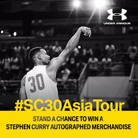 ในโปรแกรม #SC30AsiaTour แม้ครั้งนี้เขาจะไม่ได้มาเยือนเอเชียตะวันออกเฉียงใต้ แต่ Stephen ก็ไม่ลืมแฟนๆ จัดกิจกรรมออนไลน์ให้แฟนคลับลุ้นเป็นเจ้าของสินค้าลายเซ็นต์ Stephen Curry ได้ง่ายๆ ให้ทุกคนรู้สึกใกล้ชิดกับเขามากขึ้น!!เพียงร่วมกิจกรรมส่งต่อแรงบันดาลใจที่ได้จาก SC ที่เว็บไซต์ https://contest.fbapp.io/sc30asiatour สามารถร่วมสนุกได้ตั้งแต่วันนี้ถึง 13 สิงหาคม 2560