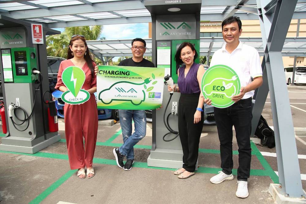 อุษา บุญชลากุศล ผู้อำนวยการฝ่ายขายและการตลาด โรงแรมฮอลิเดย์ อินนท์ วานา นาวา หัวหิน จับมือ ธนพัชร์ สุขสุธรรมวงศ์ ประธานเจ้าหน้าที่บริหาร ฝ่ายการตลาด บริษัทพลังงานมหานคร (อีเอ) เปิดตัวสถานีชาร์จไฟฟ้ารถยนต์ภายใต้ชื่อ “EA Anywhere” ขึ้น โดยเลือกเส้นทางท่องเที่ยวเมืองยอดฮิตหัวหิน พร้อมติดตั้งสถานีภายในโรงแรมฮอลิเดย์อินนท์ วานา นาวา หัวหิน เป็นสถานีโรงแรมแห่งแรกใจกลางหัวหิน และในจังหวัดประจวบคีรีขันธ์ หวังตอบโจทย์ไลฟ์สไตล์ของผู้ขับขี่ที่ชื่นชอบการเดินทางท่องเที่ยวโดยรถยนต์ พร้อมเตรียมรองรับรถยนต์ไฟฟ้าระบบ Phev (Plug-in Hybrid Electric Vehicles) และ Bev (Battery Electric Vehicles) ทุกรุ่น ทุกยี่ห้อ ซึ่งขณะนี้โรงแรมมีสถานีชาร์จไฟติดตั้งและสามารถชาร์จได้พร้อมกันแล้วถึง 6 คัน