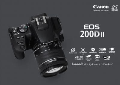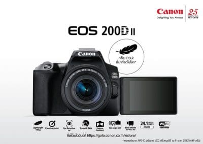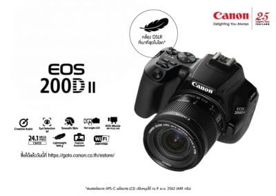 “Canon EOS 200D II ได้รับการออกแบบมาอย่างมีสไตล์ ตัวเล็ก ใช้งานง่าย เสมือนคู่หูที่เหมาะแก่การออกไปบันทึกภาพความทรงจำอันล้ำค่าในทุกโมเมนต์ของชีวิต โดย EOS 200D II มาพร้อมกับชิปประมวลผลขั้นสูงรุ่นล่าสุด เพื่อการตอบสนองที่รวดเร็ว พร้อมฟีเจอร์ต่างๆ ที่จะช่วยเพิ่มประสิทธิภาพการถ่ายภาพพอร์เทรต และระบบเชื่อมต่ออย่างราบรื่น ให้ผู้ใช้สามารถดึงข้อมูลและแชร์ภาพถ่ายสุดประทับใจได้ทันที”