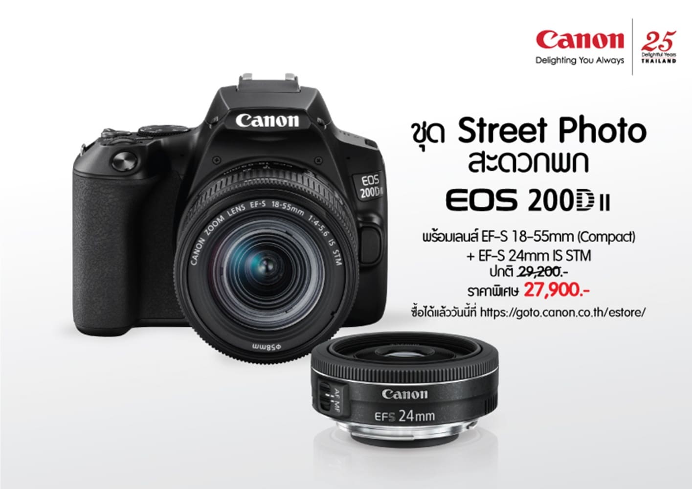 - EOS 200DII EF-S18-55mm f4-5.6 IS STM Compact และ EF-S 24mm f2.8 STM
