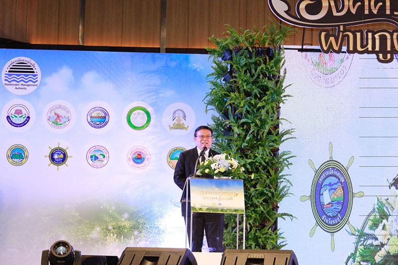 นายวิจารณ์ สิมาฉายา ปลัดกระทรวงทรัพยากรธรรมชาติและสิ่งแวดล้อม และนายชัยเกียรติ ห่านสัมฤทธิ์ ประธานคณะกรรมการองค์การจัดการน้ำเสีย ลงนามปฏิญญาว่าด้วยการรักษาสิ่งแวดล้อม ร่วมกับองค์กรปกครองส่วนท้องถิ่นและหน่วยงานด้านสิ่งแวดล้อม 39 แห่งทั่วประเทศในการบริหารจัดการระบบบำบัดน้ำเสีย พร้อมกับมอบโล่เกียรติคุณองค์กรปกครองส่วนท้องถิ่นที่มีผลงานด้านความร่วมมือการจัดการน้ำเสีย ภายในงาน “องค์ความรู้จากนภา ผ่านภูผา สู่มหานที” ซึ่งได้รับเกียรติจาก ดร.สุเมธ ตันติเวชกุล เลขาธิการมูลนิธิชัยพัฒนา บรรยายพิเศษ เรื่องระบบบำบัดน้ำเสียในโครงการอันเนื่องมาจากพระราชดำริ พระบาทสมเด็จพระปรมินทรมหาภูมิพลอดุลยเดช ในหลวงรัชกาล 9 ณ ห้องบีซีซี ฮอลล์ ศูนย์การค้าเซ็นทรัลพลาซ่า ลาดพร้าว กรุงเทพฯ