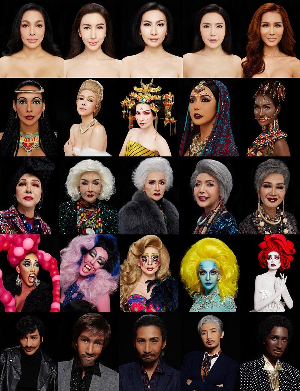 ทั้งนี้เราดีไซน์หน้าของนางแบบแต่ละคนออกเป็นสาว 5 ชาติ ทั้ง อินเดีย ฝรั่ง แอฟริกา จีน และ ลาติน แล้วแต่ละชาติก็แยกออกไปอีกคนละ 3 สไตล์ตามเซ็ตเครื่องสำอางของเรา นอกจากนี้เรามีกลุ่มนางแบบสาวประเภทสองที่ร่วมงานจนรู้ใจกัน ชีต้าร์ มายัน มิสเอซีดีซี 2001,ไวท์-ไข่มุก กลิ่นดอกไม้ รองมิสทิฟฟานี่ยูนิเวิร์ส 2002,โกโก้-กกกร เบญจาธิกุล (โก้ สตรีเหล็ก),ส้มโอ-ยลรตี โคมกลอง มิสคาลิปโซ่ 1998 และ แชมเปญ-กมลรส ทูลภิรมย์ มิสเอซีดีซี 2013 และ มิสควีน ออฟ ดิ ยูนิเวิร์ส 2016 ซึ่งแต่กันคนละ 5 สไตล์ ตามหลักสูตรการแต่งหน้าของโรงเรียนฯ ทั้งแบบเนเชอรัล แบบเจ้าสาว แบบสูงวัยในแบบฉบับแต่ละคน แบบแดร็กควีน และ แบบผู้ชาย ที่มีการใช้เทคนิคหล่อบล็อคหน้าเข้ามาช่วย