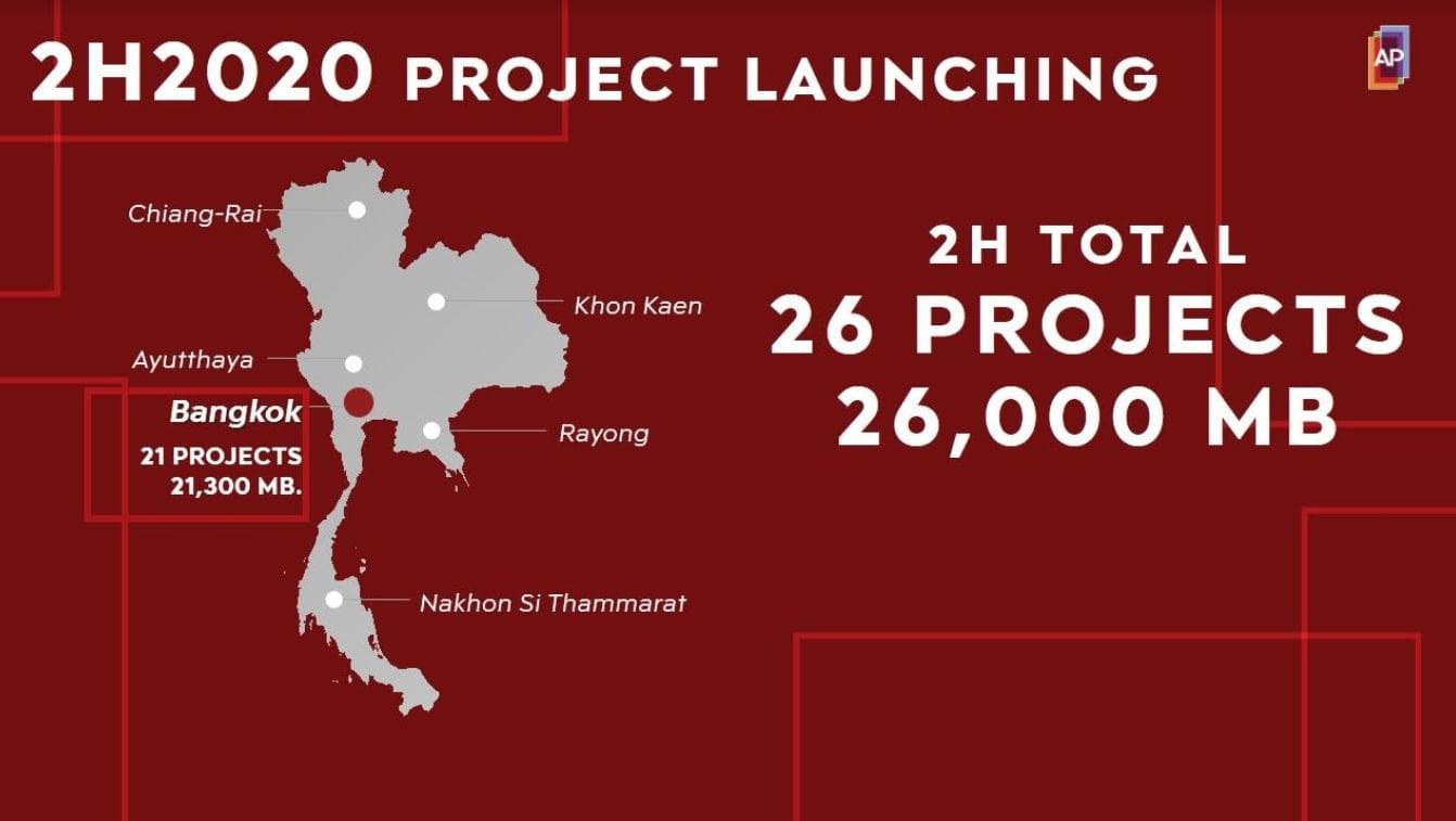 ทั้งนี้ ในครึ่งปีหลังของปี 2563 บริษัทฯ ยังคงดำเนินงานตามโรดแมพ MASTERPLAN FOR TOMORROW ที่วางไว้ตั้งแต่ต้นปี ด้วยการเดินหน้าขยายขอบเขตในการสร้างพิมพ์เขียวแห่งการอยู่อาศัยคุณภาพให้ครอบคลุมความต้องการของคนไทยที่มากขึ้น ผ่านแผนการเปิดตัวโครงการแนวราบใน 5 จังหวัด ด้วยแบรนด์ อภิทาวน์ มูลค่ารวม 4,700 ล้านบาท ได้แก่ นครศรีธรรมราช ระยอง อยุธยา ขอนแก่น และเชียงราย ในรูปแบบโครงการแบบมิกซ์ โปรดักส์ (Mix Products) ตอบโจทย์ความต้องการที่อยู่อาศัยทั้งในแบบบ้านเดี่ยว บ้านแฝด และทาวน์โฮม ราคาเริ่มต้น 1.5 – 9 ล้านบาท พร้อมแผนการเปิดตัวโครงการใหม่ในกรุงเทพฯ อีกจำนวน 21 โครงการ โดยเป็นบ้านเดี่ยว 8 โครงการ มูลค่า 7,970 ล้านบาท และทาวน์โฮม 13 โครงการ มูลค่า 13,330 ล้านบาท รวมครึ่งปีหลังบริษัทฯ เตรียมเปิดตัวโครงการใหม่รวมทั้งสิ้น 26 โครงการ มูลค่ารวม 26,000 ล้านบาท