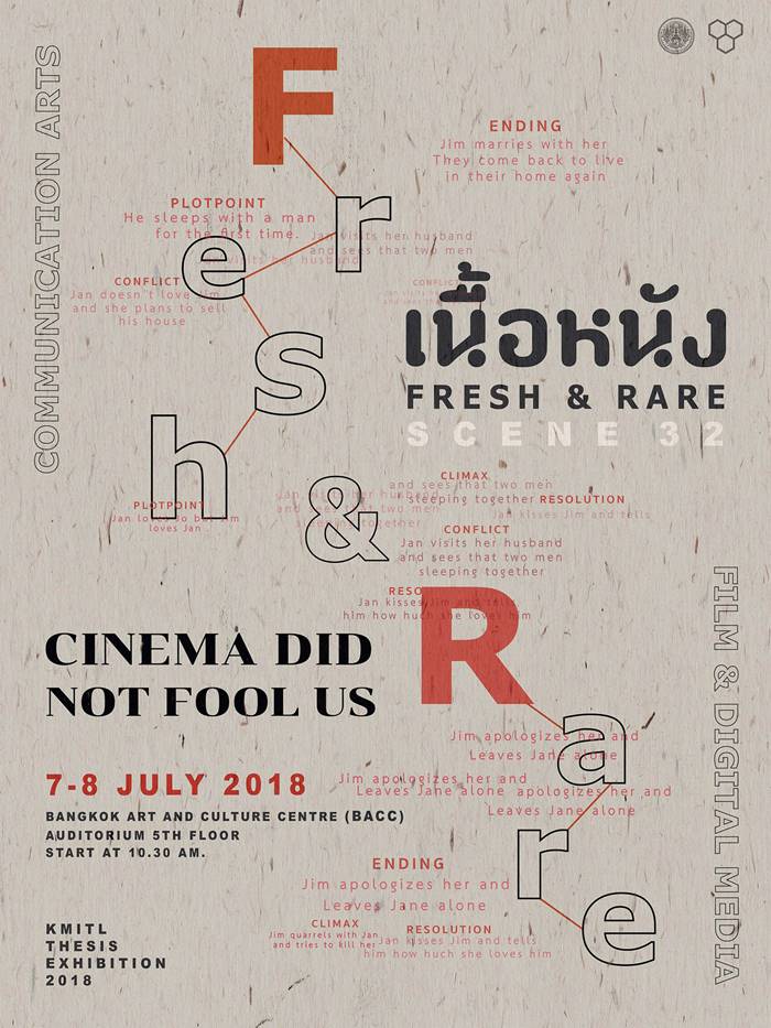 สถาบันเทคโนโลยีพระจอมเกล้าเจ้าคุณทหารลาดกระบัง (สจล.) โดยคณะสถาปัตยกรรมศาสตร์ ชวนผู้สนใจชมผลงานศิลปะนิพนธ์นักศึกษา ภาควิชาภาพยนตร์ และดิจิตัล มีเดีย ในงาน “เนื้อหนัง : FRESH & RARE 2018” ในหัวข้อธีม “ภาพยนตร์ไม่เคยหลอกเรา : Cinema Did Not Fool Us” ภายในงานพบภาพยนตร์ และแอนิเมชัน กว่า 30 เรื่อง ที่จะสับเปลี่ยนหมุนเวียนตลอดทั้งวัน โดยมีเนื้อหาสะท้อนมุมมองการตีความภาพยนตร์ อันเกิดจากการสื่อสารคลาดเคลื่อนจากความเป็นจริง ทั้งนี้ กิจกรรมดังกล่าว มีกำหนดจัดขึ้นระหว่างวันที่ 7 – 8 กรกฎาคม 2561 เวลา ณ 10.30 – 21.30 น. ณ ชั้น 5 ห้องออดิทอเรียม หอศิลปวัฒนธรรมแห่งกรุงเทพมหานคร (BACC) โดยไม่มีค่าใช้จ่าย สอบถามรายละเอียดเพิ่มเติมได้ที่หมายเลขโทรศัพท์ 08-1699-1966 หรือ www.facebook.com/freshandrare