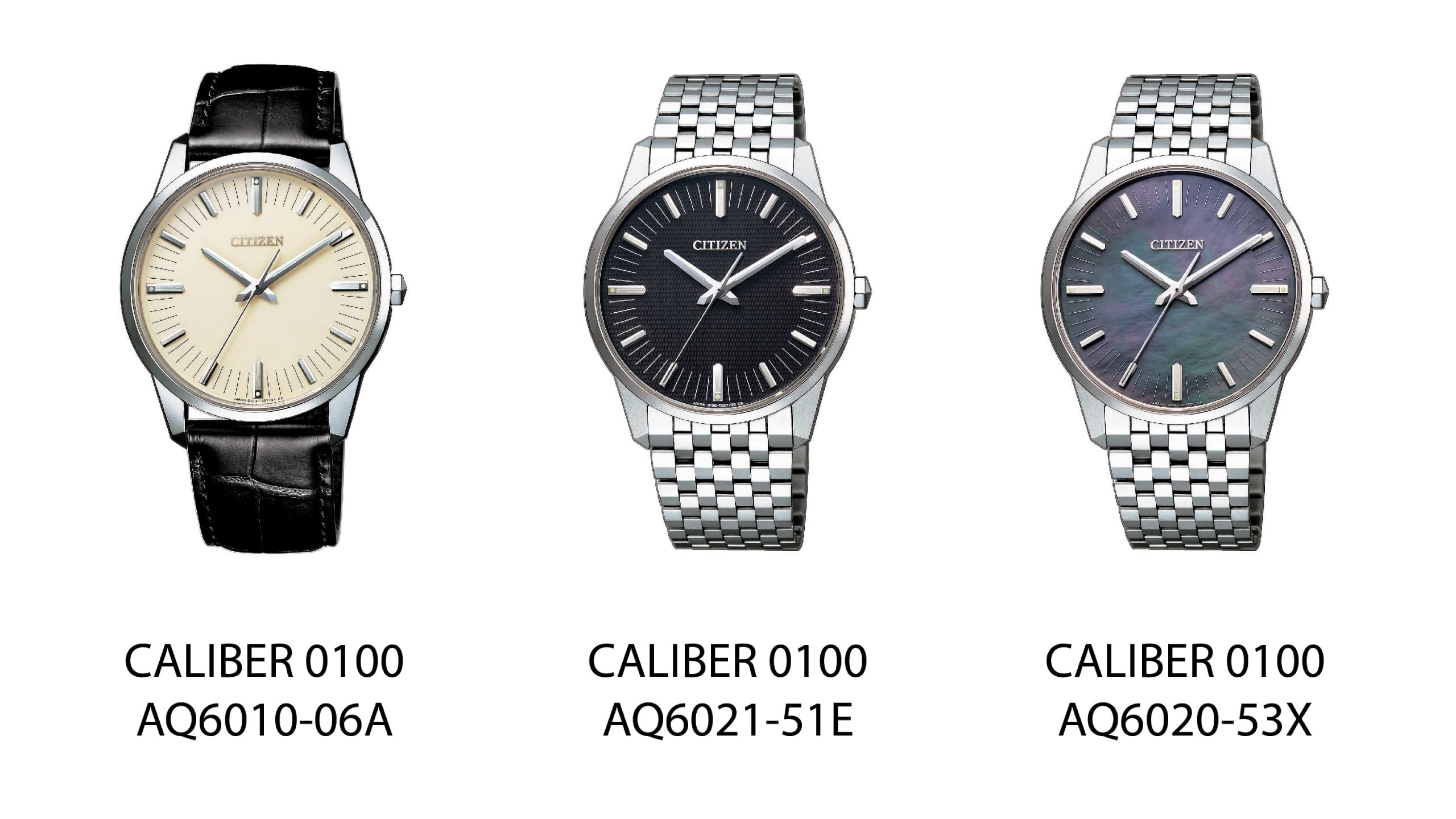 CITIZEN Caliber 0100 New Eco-drive เป็นนาฬิกาที่แสดงถึงความงดงามของเวลาอย่างแท้จริง ด้วยความเที่ยงตรงที่สุดในโลก ±1 วินาทีต่อปี สามารถปรับเทียบเวลาได้เองอย่างแม่นยำโดยไม่ต้องพึ่งข้อมูลจากเสาวิทยุหรือดาวเทียม และสะท้อนความกล้าหาญของซิติเซ็นในการไล่ตามแก่นแท้ของนาฬิกาด้วยการออกแบบให้มีความเรียบง่ายที่สุด ให้ความสำคัญในทุกรายละเอียด ภายใต้การผลิตที่มีคุณภาพอย่างเข้มงวดของซิติเซ็นและนวัตกรรมที่ยั่งยืนของระบบ Eco-Drive รวม 3 รุ่น ซึ่งมีกำหนดเปิดตัวในช่วงปลายปีนี้ โดยตัวเรือนทองคำขาว (AQ6010-06A) มีเพียง 100 เรือนทั่วโลก และตัวเรือนซูเปอร์ไทเทเนียม (AQ6021-51E และ AQ6020-53X) ผลิตจำนวนจำกัดเพียง 500 เรือน และ 200 เรือน