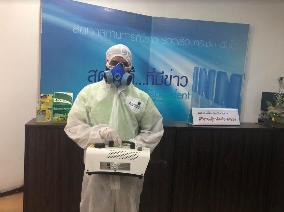 สำนักข่าว ไอ.เอ็น.เอ็น เล็งเห็นความปลอดภัยของบุคลากรและผู้สื่อข่าว ได้รับบริการจากแบรนด์ “ดีไฮจีนิค” ผู้นำนวัตกรรมปล่อยควันฆ่าเชื้อออแกนิค ควบคุมปกป้องไม่ทำให้ไวรัสกระจายตัว ประสิทธิภาพของเครื่อง Anti-Virus Disinfection Coating มาพร้อมระบบ Fogging Technology เป็นเทคโนโลยีไฮเทค รายแรกในประเทศไทย เป็นมิตรต่อมนุษย์ สัตว์ และสิ่งแวดล้อม ไม่มีสารเคมี